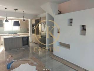 Nea Makri, Neos Voutzas - Tangent Maisonette 129sqm unfurnished, bedrooms 2, levels 2, ground floor - 1st, newly built, year built 2022, energy class A, living room, hall, kitchen, 2 bathrooms, heating type: autonomous (oil), air condition, parking, quiet, dual aspect apartment, luminous, unobstructed view view, frontage, electric roller shutters, storage space, solar heater, fireplace, balconies, large balconies, garden, aluminum frames, double glazed windows, door screen, ceramic tiles floors, without common charges, night electricity discount rate, secure door, alarm, video doorbell, luxurious, internal staircase, playroom, pets allowed, within city plan, residential zone, south-western orientation, access from asphalt, investment property, special offer, commercial use.