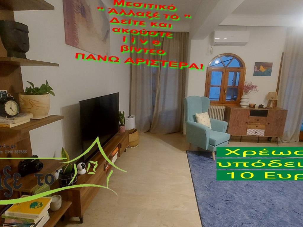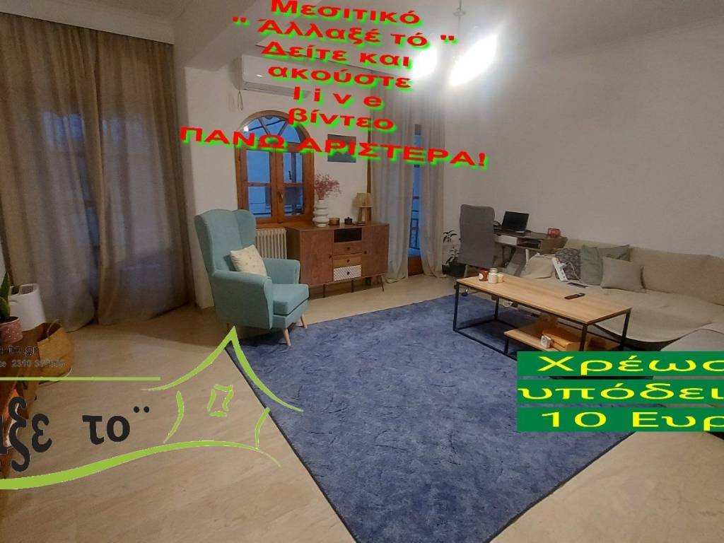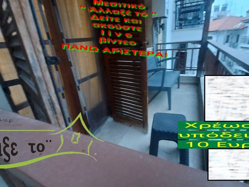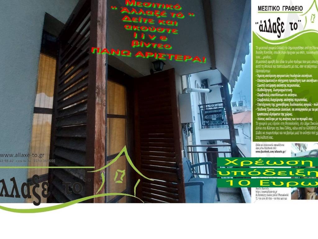 Check the video : https://youtu.be/l1iLlwtNd9Q The Presentation - suggestion of the property costs 10 €.(Including Taxes) law Ν.2859/2000 » Ar 9. If you liked the photos and the description, do not forget to watch and listen to the video! Watch and listen to the video as many times as you like here: https://youtu.be/l1iLlwtNd9Q or right and bottom to the end of the page. So you know from the beginning if it's worth to seeing it.. It's like you are within the home. SERVICES PROVIDED: The Presentation - suggestion of the property costs 10 €.(Including Taxes) Upon completion of the transaction, the above amount is deducted from the Brokerage Fee. The property is indicated by the demonstration of the police ID. The Presentation of the property at our office is free of charge. The Real Estate Change Office was created by Rania Pappa and Vassilis Kontelis, because when they were looking for a home, they were badly affected by ... realtors. Brokering fees is not the only thing that we care about. We love this job very much and we identify with you as if we were looking for a home for us ... Like Like on our Facebook page and see all opportunities here: https: //www.facebook.com/allaxeto.gr ΥοuTube : https://www.youtube.com/user/MsPaco75 Real Estate Office "Change it" Mobile phone for appointment: Vasilis 00306932425542 {cosmote,viper,what's app} Contact Person: Mr. Vasilis Kontelis Tel.: 00302310387655 Address: Riga Ferraiou 175 Sykies P.C. 56626 Thessaloniki Email: b-kontel@otenet.gr www.allaxe-to.gr