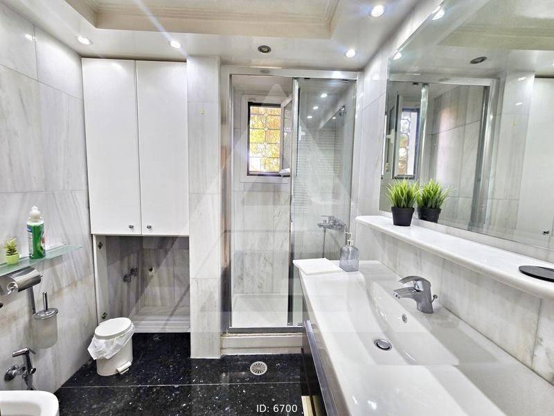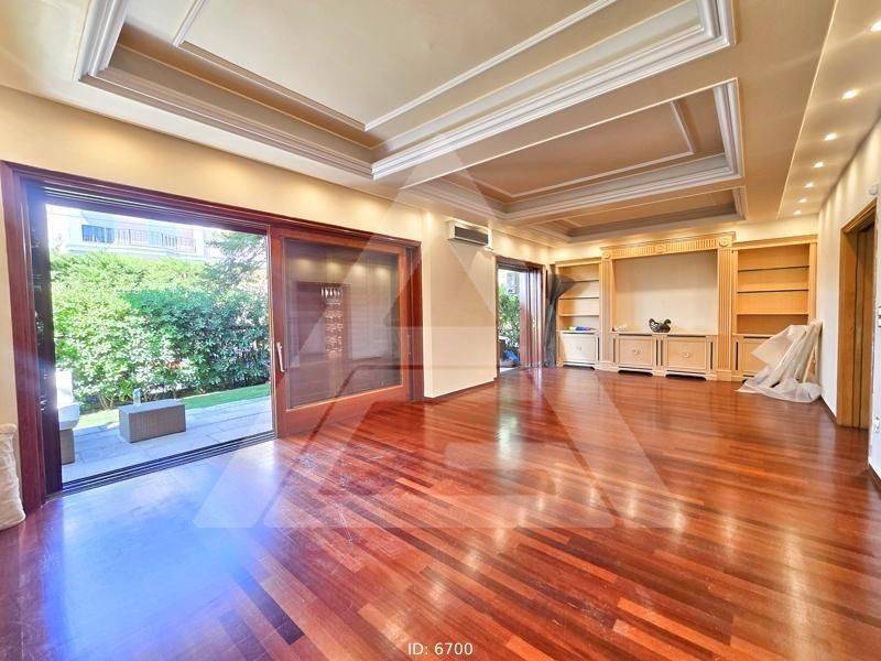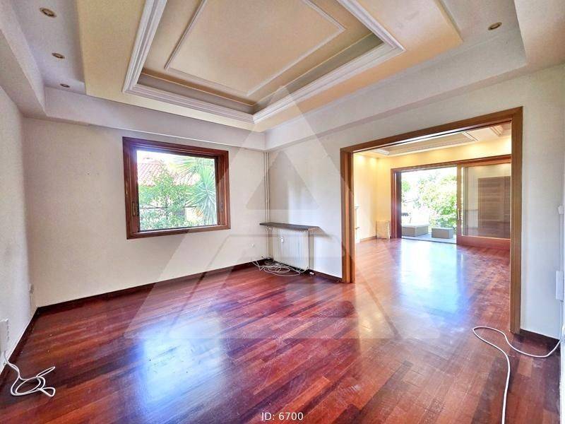Kifissia, Politia - Apartment 300sqm bedrooms 5, levels 1, ground floor (300sqm, 5 bedrooms, living room, 3 bathrooms), very good condition, year built 1980, energy class B, living room, hall, kitchen, 3 bathrooms, heating type: autonomous (heat pump), air condition, parking open space, quiet, dual aspect apartment, luminous, frontage, storage space 12sqm, solar heater, fireplace, balconies, garden, garden 100sqm, wooden frames, wood floors, separate kitchen, residential zone, access from asphalt, price is negotiable, close to square (up to 100m), close to bus stop (up to 100m).