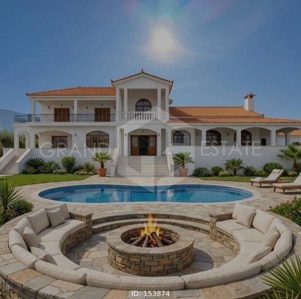Halkida - Villa 430sqm plot 4000sqm, bedrooms 3, levels 3, basement - ground floor - 1st, good condition, year built 1993, energy class Exempt, 2 living rooms, hall, kitchen, 2 bathrooms, wc, heating type: autonomous (oil), air condition, parking, quiet, dual aspect apartment, luminous, unobstructed view, frontage, storage space, fireplace, balconies, large balconies, garden, aluminum frames, double glazed windows, ceramic tiles floors, without common charges, internal staircase, pets allowed, within city plan, residential zone, north-eastern orientation, access from asphalt, close to sea (up to 1500m).