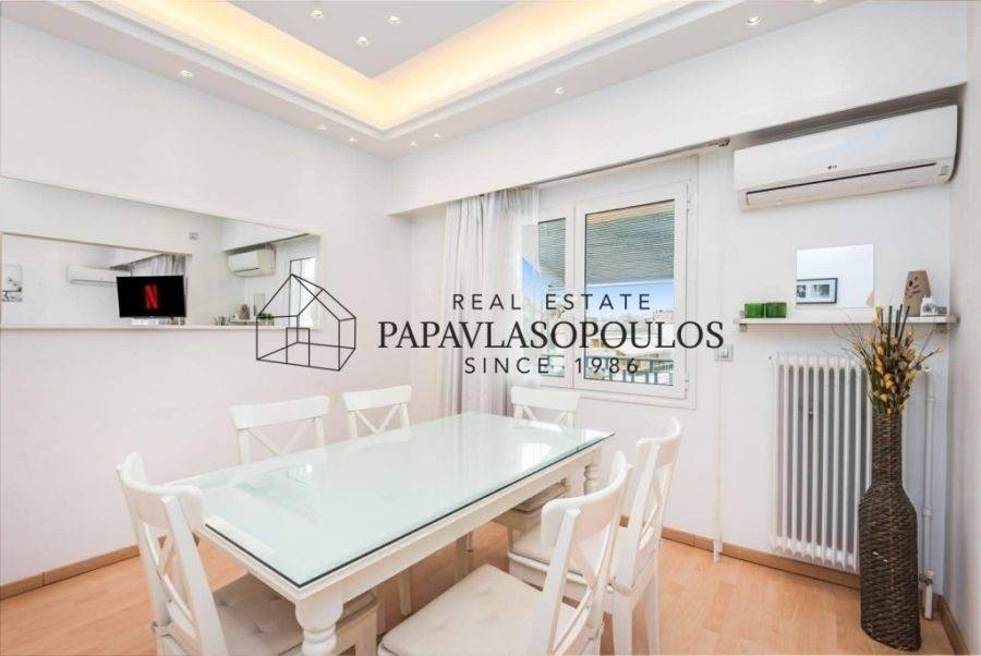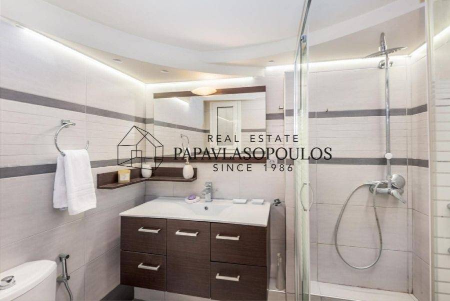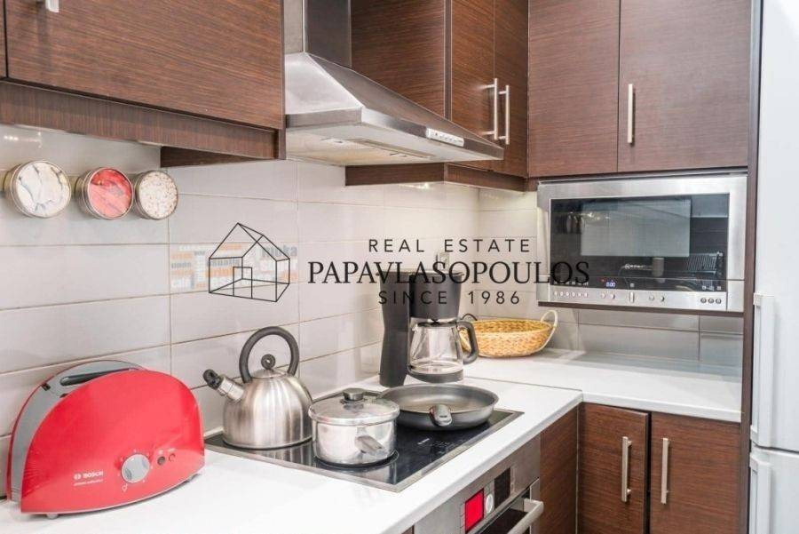 An exceptional, fully and luxuriously renovated apartment of 66 sq.m., located on the 5th floor, is available for long-term rental in a prime area of Ampelokipoi, within walking distance of Panormou Metro Station and Kifisias Avenue. The apartment is set on a quiet street, enjoys unobstructed open views, and stands out thanks to its spacious 30 sq.m. veranda, offering a true penthouse feel and a high standard of urban living. Layout includes: bright open-plan living and dining area with a modern open kitchen, οne comfortable bedroom, bathroom and WC. The property has been renovated using high-quality, premium materials, with attention to detail, functionality, and contemporary aesthetics. It is offered fully furnished and fully equipped, including all essential furniture and electrical appliances. Sofa beds provide the option to comfortably accommodate additional guests without compromising design or comfort. Features: Air conditioning, security door, awnings, excellent condition & refined aesthetics, ready for immediate occupancy – no additional equipment required. This is a high-specification residence, ideal for tenants seeking quality, comfort, and a prime location, without compromises. Available from 01/04/2026. Papavlasopoulos Real Estate since 1986 T. 2106461211, 6981216001 info@papavlasopoulos.gr