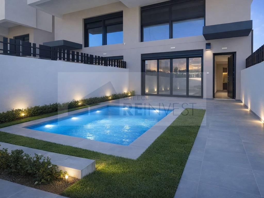 LUXURY GROUND FLOOR MAISONETTE – GERAKAS Immerse in absolute private luxury with this brand-new ground floor maisonette 157 sqm in Gerakas – a 2026 masterpiece with A+ energy class, impeccably finished in high-spec minimalist aesthetics, ideal for premium tenants envisioning custom furnishings in flexible, luminous spaces of exceptional materials, with private 80 sqm garden & 9 sqm pool for your exotic oasis! Master bedroom with built-in wardrobe, 2 additional bedrooms ready for your premium mattresses; 2 luxurious bathrooms with high-pressure showers & guest WC, high-spec kitchen island for pro appliances & induction; spacious living room prepped for designer sofa/QLED over Italian tiles, in bright, breezy, sunny setting with unobstructed panoramic views – opens directly to the enchanting 80 sqm garden with 9 sqm pool for sunsets & private pool parties, enveloped in lush greenery! Bonus basement: Maisonette spans 3 levels with extra 25.80 sqm room + full bathroom – perfect as home office, guest suite, or staff quarters, with separate entrance for total flexibility. Next-level tech: Autonomous heat pump, AC, solar boiler, PV panels + net metering (zero bills!), full smart home (app lights/gate/pool/cameras), Hörmann door, video intercom, alarm, storage, covered parking – all for ultimate privacy. Elite location: 200m bus stop (405/447), 400m primary/junior high, 700m supermarket, 1km Gerakas Sq., 2.5km Metro/Proastiakos Plakentias, 2.5km Attiki Odos – serene green with instant Athens access. Your ultimate private paradise. REINVEST GREECE | +302107728460 | sales@reinvest.gr | reinvest.gr