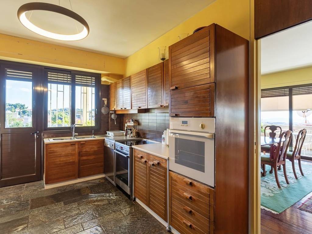 Αρχοντικό διαμέρισμα 260 μ2 , 2ου και τελευταίου ορόφου στην Κηφισιά Πολιτεία χαμηλά , δίπλα στην πλατεία της πολιτείας. Εξαιρετική θέα , στις τρείς πλευρές ελεύθερο . Είναι κατασκευής 1984 σε πολυκατοικία πολύ καλά συντηρημένη , σχεδιασμένη από γνωστό αρχιτέκτονα. Πολύ μεγάλο χώρο υποδοχής , τραπεζαρία , καθιστικό , γραφείο, 3 μεγάλα υπνοδωμάτιο και ένα ΥΔ βοηθητικό με το μπάνιο του . Το master μεγάλο με πάρα πολλές ντουλάπες και μεγάλο μπάνιο , 1 μπάνιο κοινό για τα 2 ΥΔ , 1 WC επισκεπτών , μεγάλη ανεξάρτητη κουζίνα και ΥΔ υπηρεσίας με μπάνιο . Διαθέτει ανεξάρτητη θέρμανση πετρελαίου ( δικό του λέβητα και δεξαμενή) , τζάκι , καινούργια κουφώματα αλουμινίου, διπλά τζάμια, ηλεκτρικά ρολά, τεράστιες βεράντες με απίστευτη θέα μέχρι την Αίγινα, ξύλινα πατώματα παντού , πόρτα ασφαλείας , ηλιακό θερμοσίφωνα, συναγερμό , 2 υπόγειες θέσεις στάθμευσης . Βρίσκεται δίπλα στην πλατεία της Πολιτείας. Ένα πραγματικά μοναδικό διαμέρισμα σε εξαιρετικό σημείο, με ονειρική θέα. Ενεργειακή κλάση Ζ. Τιμή: 2800 € ΕΥΑΓΓΕΛΙΑ ΚΥΡΙΑΚΟΥ ΜΕΣΙΤΙΚΟ Τηλ/νο +306977744953 email:evag.kyr@gmail.com