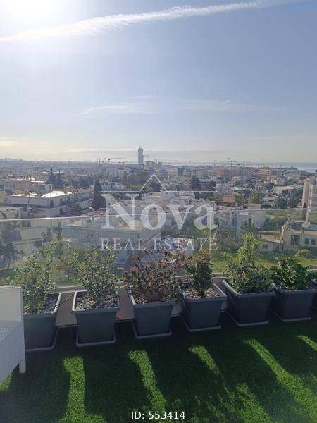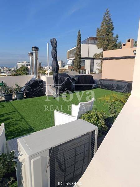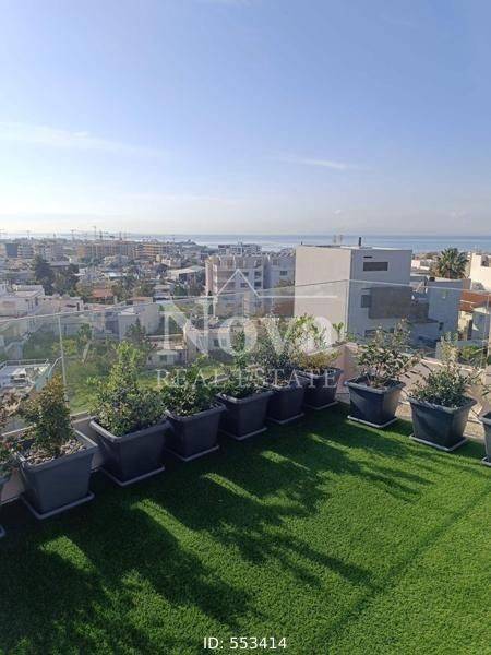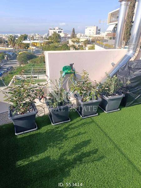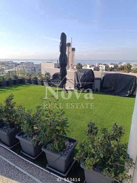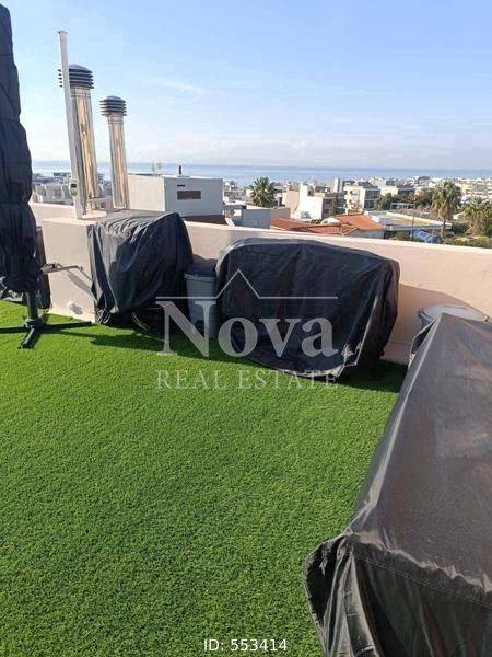 Alimos, Pani - Apartment 93sqm fully furnished, bedrooms 2, 1st (38sqm) - 2nd (55sqm), fully renovated, year built 2010, renovation year 2025, energy class B, living room, hall, kitchen, bathroom, wc, heating type: autonomous (oil), parking covered, quiet, luminous, sea view, facade, painted, rolling shutter, storage space 7sqm, solar heater, boiler, fire place, balconies, large balconies, tents, elevator, storage space in house, private terrace, terrace 50sqm, built in appliances, aluminum frames, double glaze windows, door screen, wood & tile floors, office, three phase electricity, secure door, alarm, surveillance cameras, video doorbell, internet, pets allowed, close to park (up to 100m), close to market (up to 100m), close to super market (up to 100m).