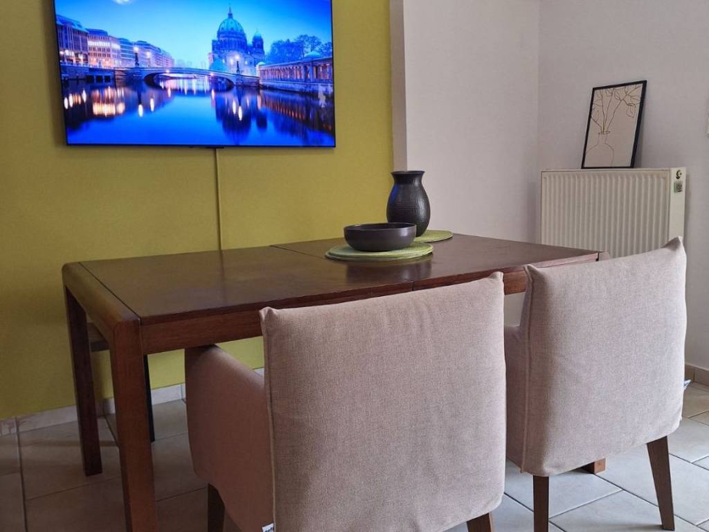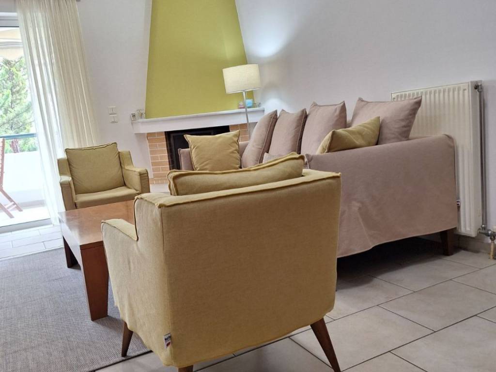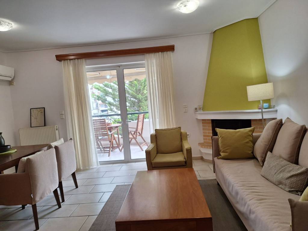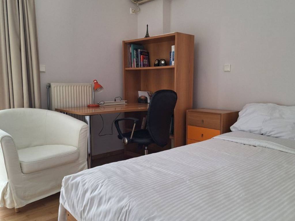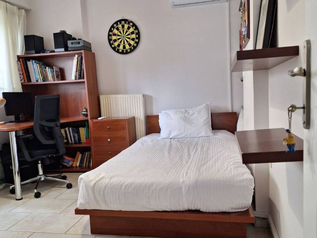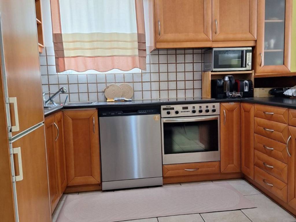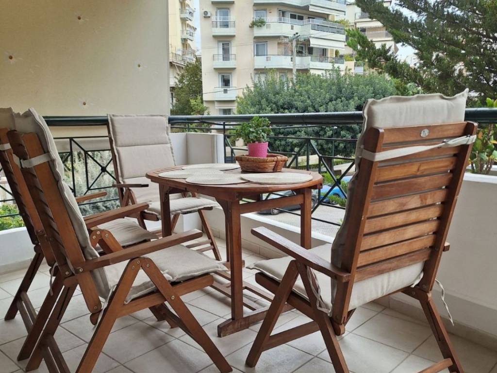 1st floor apartment 87 sq m. for short-term rental only. The apartment is fully furnished and equipped, has bed linen and towels, 3 bedrooms (1 double and 2 semi-double beds), 3 work stations, 1 living room-dining room-kitchen, 1 bathroom, 1 WC, and an outdoor parking space. It also has solar panels, a boiler, air conditioning in all areas, awnings, internet and alarm. It is 1.8 km from Alimos metro station and 1.7 km from Alimos beach. It is very close to a bus stop (109) AMA: 00003664926
