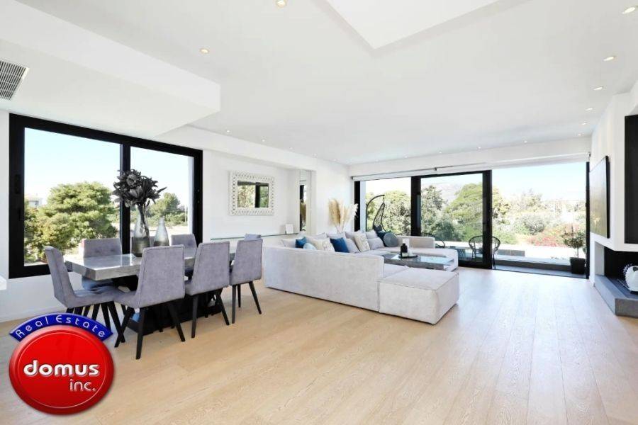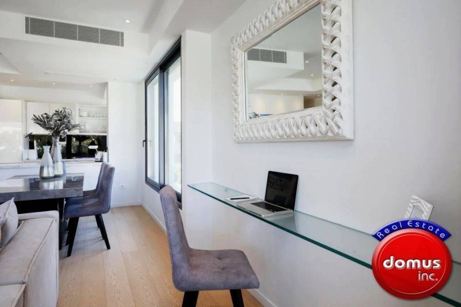 Elliniko, Kato Elliniko, Apartment For Sale, 141 sq.m., Property Status: Amazing, Floor: 1rst, 1 Level(s), 2 Bedrooms (2 Master), 1 Kitchen(s), 2 Bathroom(s), 1 WC, Heating: Autonomous, View: Sea view, Building Year: 2017, Energy Certificate: A, 2 parking(s), Floor type: Wooden floors, Type of door frames: Aluminum, Features: Elevator, Security door, Security alarm, CCTV, Storage room, Fireplace, Satellite Receiver, Internet Line, Electric Appliances, Double Glazed Windows, Window Screens, Balcony Cover, Balconies, For Investment, Furnished, Luxury, Roadside, Bright, AirConditioning, Solar water system, Boiler, Grass, Automatic Watering, Trees, Swimming pool, Back yard (Garden), New Construction, Renovated, Distance from: Seaside (m): 100, Price: 950.000€. Domus inc., email: gr@greekblue.gr