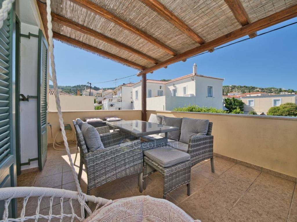 This modern 2-level maisonette in the center of Spetses offers 170 sq.m. of spacious and stylish living, on a plot of 225 sq.m., and is located 630 meters from the sea. The house was constructed in 2006 with energy class C and was renovated in 2021, ensuring renewed spaces that combine comfort and modern amenities.