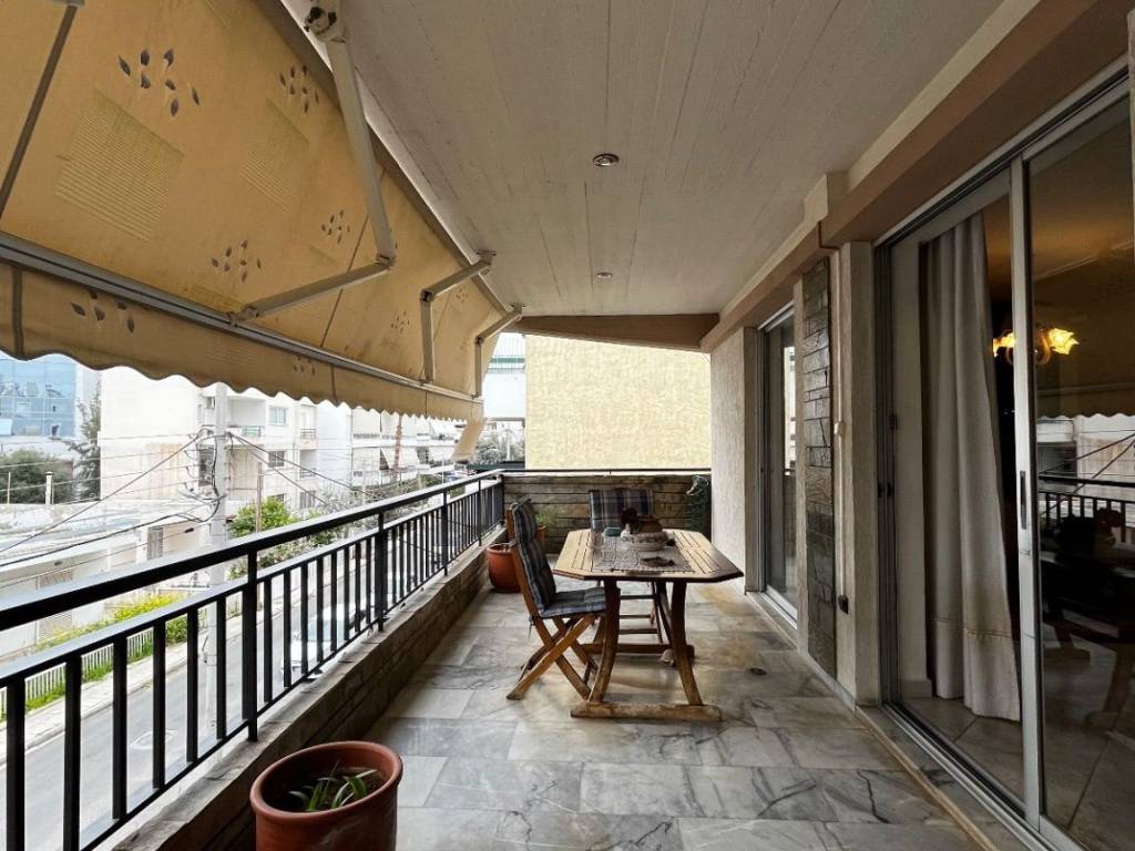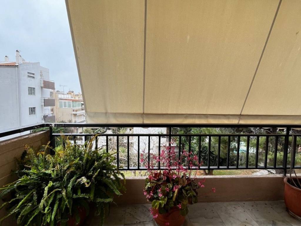 GLYFADA – apartment for sale, 92 sq.m., 2nd floor, built in 1985 The property consists of a spacious living room with dining area, a kitchen, one bathroom, one WC, and two bedrooms. It is front-facing, very bright, dual-aspect, and features a large veranda and balconies. Additional features include a pilotis parking space, a basement storage room, autonomous oil heating, aluminum window frames, a security door, awnings, and wooden and tiled flooring. It is located in an excellent area, just 1,000 meters from the Elliniko metro station, close to supermarkets, restaurants, cafés, banks, etc. It offers an ideal base to enjoy all the advantages of the area. The close proximity to the main shopping district and the Experience Park ensures endless options for activities and leisure, while easy access to the Athenian Riviera makes seaside getaways especially appealing.