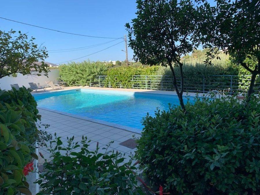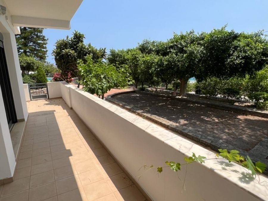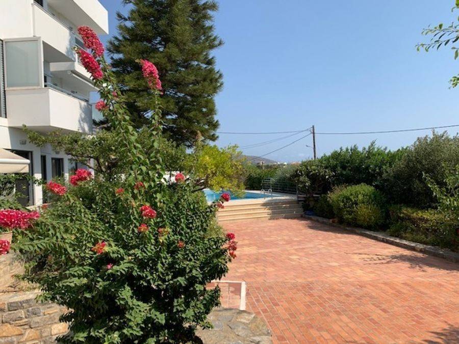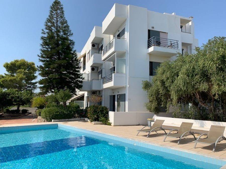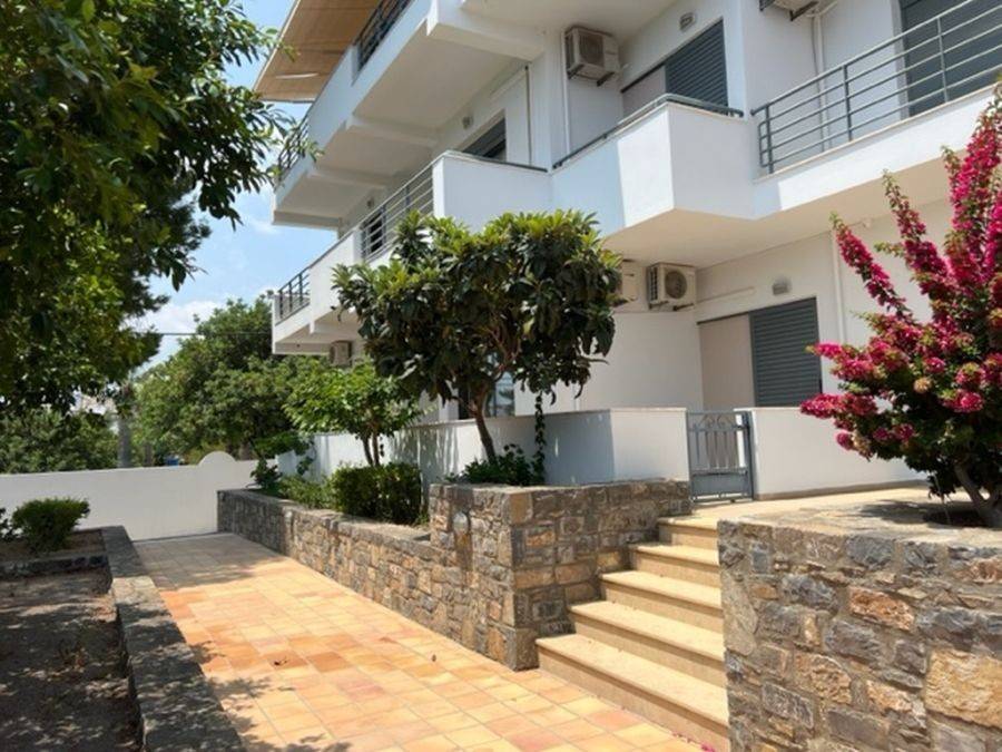 A nice 100m2 ground floor apartment is for sale in the town of Aghios Nikolaos. It is located 1km from the center of the town, and only 50m from the sea. The accommodation comprises of an open plan living - dining area with a fitted kitchen, three fitted bedrooms and two bathrooms. All of the bedrooms open into the 36m2 balcony with glorious views to the nice landscaped garden. This is a high quality, well designed complex where each apartment includes centrally heating, solar system, satellite TV and internet connection as well. Also it has its own parking space and in the landscaped gardens there is a large communal swimming pool. This apartment is ideal purchase for holiday or permanent residence.