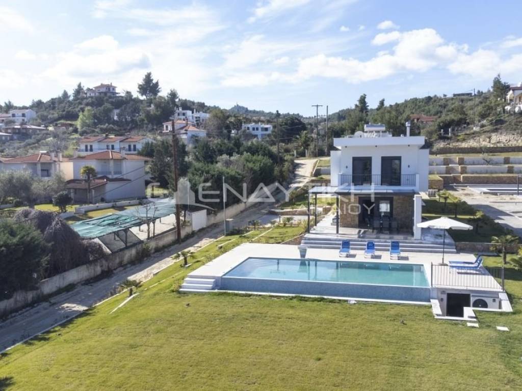 Property Code: 2-10431 - House FOR SALE in Pallini Pefkochori for € 700.000 . This 180.00 sq. m. furnished House consists of 3 levels and features 5 Bedrooms, an open-plan kitchen/living room, 3 bathrooms . The property also boasts Heating system: Individual - Electric, tiled floor, unobstructed view, Window frames: Synthetic, Security door, accessibility for people with disabilities, parking, a storage unit sqm, garden, fireplace, swimming pool, A/C, alarm system, electrical appliances, awnings, insect screens, double-glazed windows, BBQ, CCTV cameras, intercom TV, open space, internal staircase, balconies: 20 sqm. The building was constructed in 2023 Plot area: 1200 s.q. . Building Energy Rating: A+ Distance from sea 200 meters,