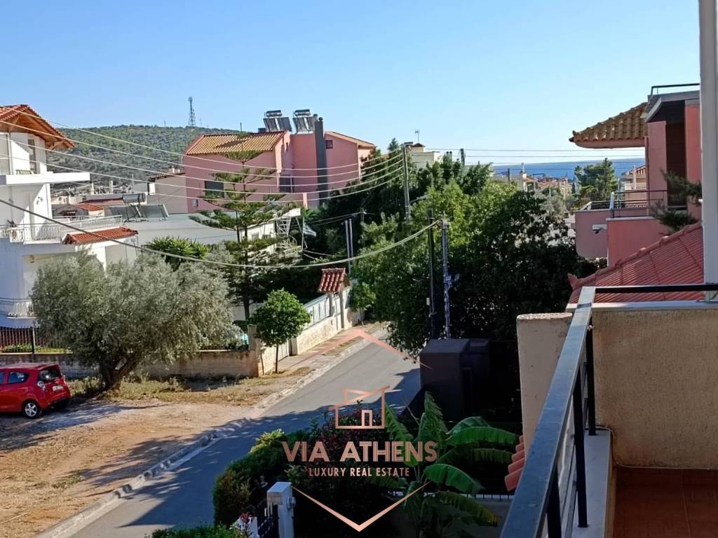Maisonette House for Sale in the Area: Vari - Varkiza, Miladeza,198sqm. In a quiet neighborhood, surrounded by greenery with a view and open horizon, this property has an area of 198 sq.m. on a plot of 300 sq.m., with the possibility of building a pool. The maisonette consists of three levels: a semi-basement, ground floor, and first floor. The semi-basement features windows and includes 2 bedrooms, an open-plan kitchen, a small living room with a fireplace, and a bathroom. It also has an independent entrance and can function as a separate apartment. The ground floor includes a kitchen, a WC, a living room with a fireplace, a dining room, and a large veranda. The first floor comprises 4 bedrooms, a bathroom, and a veranda. There is a wonderful sea view from the roof terrace, and there is the possibility for an extension with a remaining building allowance of 30 sq.m. The property includes 4 parking spaces. Constructed in 1993, it features a fireplace, autonomous heating, air conditioning, solar panels, aluminum frames with double glazing, tiled and wooden floors, screens, and a storage room. Price: €480.000. VIA ATHENS, contact phone: 2121030916, +306948183637, email: info@via-athens.com, www.via-athens.com