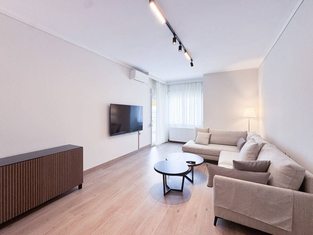 We present a unique three-bedroom apartment of 108 net sqm in the center of Kalamaria, just a short walk from the upcoming metro station and the shopping center. The apartment is located on the 5th floor of a well-maintained 1990 building, with a parking space in the pilotis. It consists of three bedrooms, two bathrooms, a separate kitchen, and a spacious living/dining area. It was fully renovated in 2026 with high-quality materials and distinctive interior design, and is offered fully furnished and equipped with premium electrical appliances. Particular emphasis was placed on the property’s energy upgrade, with the installation of Kelyfos external thermal insulation and the thermal and waterproof insulation of the roof terrace. Luminous, bright, with large balconies, it is a unique option for high standard living. Location: Kalamaria is located in the southeastern part of Thessaloniki. Unique Features: Kalamaria is described as the "Riviera of Thessaloniki" and is an area with a vibrant life and unique character. The Marina of Kalamaria is a characteristic point of the area where the citizens can enjoy a walk or can do their everyday workout. Kalamaria is also known for its large market and the huge range of choices that it offers in terms of dining. Accessibility: Kalamaria is located just 7.5 kilometers from the center of Thessaloniki and 12 kilometers from the airport, while it is served by several bus lines of OASTH. Investment Opportunity: Kalamaria's vibrant lifestyle and its excellent location by the sea helps to maintain a high level of investment interest.