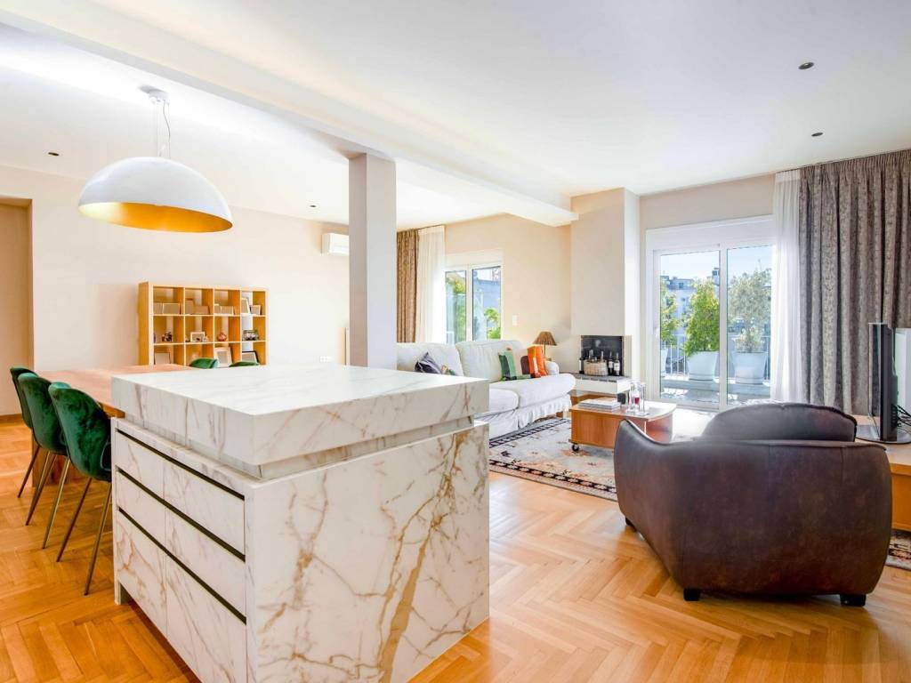 An exceptional penthouse apartment is now available in the prestigious Museum area, just 100 meters from the lush gardens of the National Archaeological Museum. This prime location offers both proximity to cultural landmarks and a serene residential ambiance, making it an ideal choice for those seeking a sophisticated urban lifestyle. Situated on the sixth floor of a grand, historic building dating back to 1958, this sun-drenched, airy, and bright residence spans an impressive 140 sq.m. The open-concept layout seamlessly integrates a spacious living area, a modern kitchen, and an elegant dining space, creating a warm and inviting atmosphere for both daily living and entertaining. The apartment features three well-proportioned bedrooms along with a large, stylish bathroom and a guest W.C. Fully renovated in 2021, with autonomous gas as heating system, it provides efficiency and comfort all year round. The area around the National and Archaeological Museum is perhaps the most promising area in the real estate market of central Athens. Omonia is constantly being upgraded while the following private and public projects are taking place. The redevelopment of the Museum by the Chipperfield Tombazis partnership, the Accor Group hotels just ahead, the renovation of the Papaleonardou building and its transformation into an Opera Academy, the reconstruction of the Minion are some of the planned and ongoing projects that will change the area once and for all.
