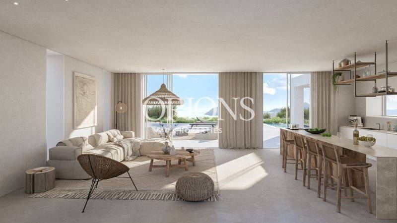 Upon entry, the ground floor welcomes you with 130 square meters of inviting space, featuring a spacious living room and an open plan kitchen as well as two independent suites for enhanced privacy and comfort. Ascend to the first floor to discover the expansive 45-square-meter master suite, complemented by a panoramic sea-view balcony offering breathtaking vistas.