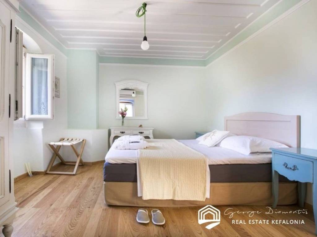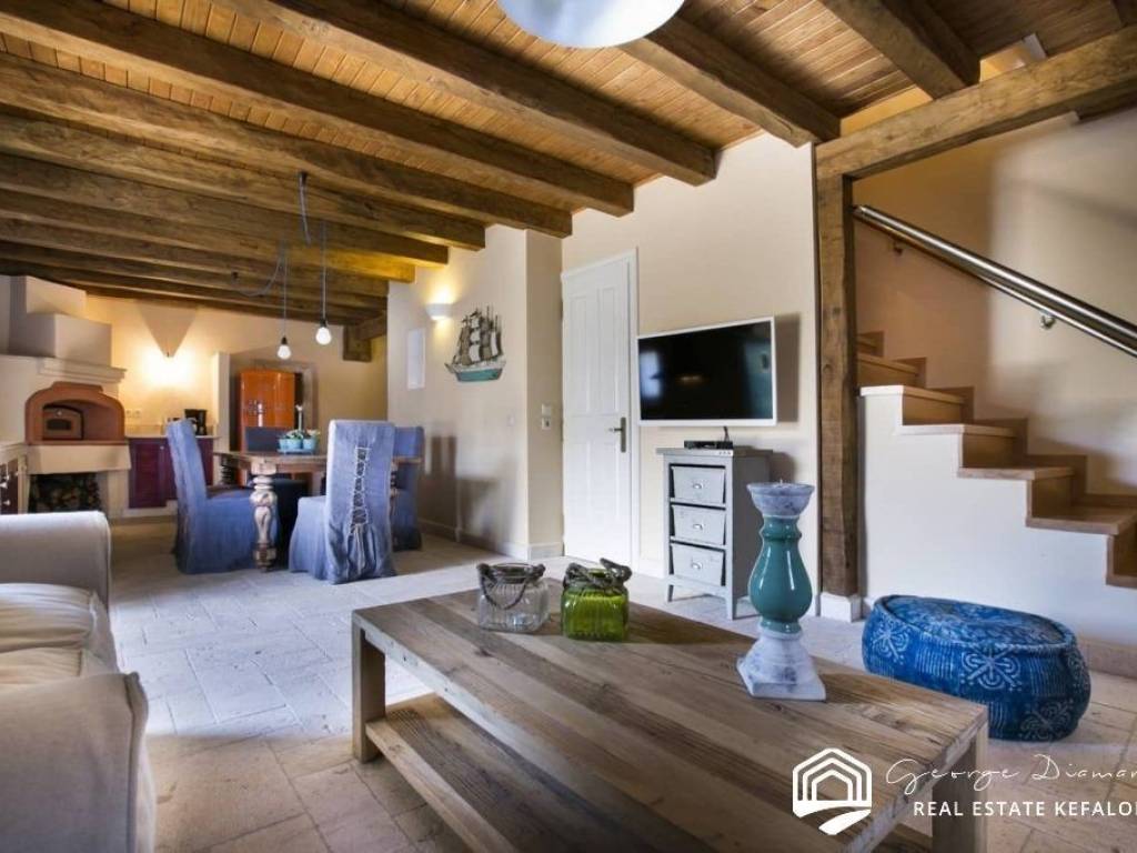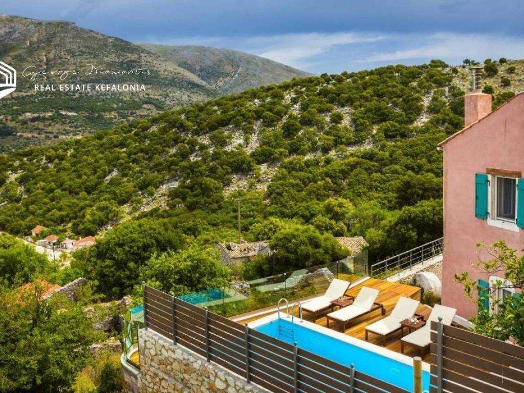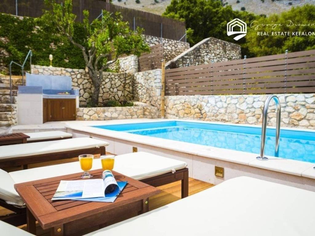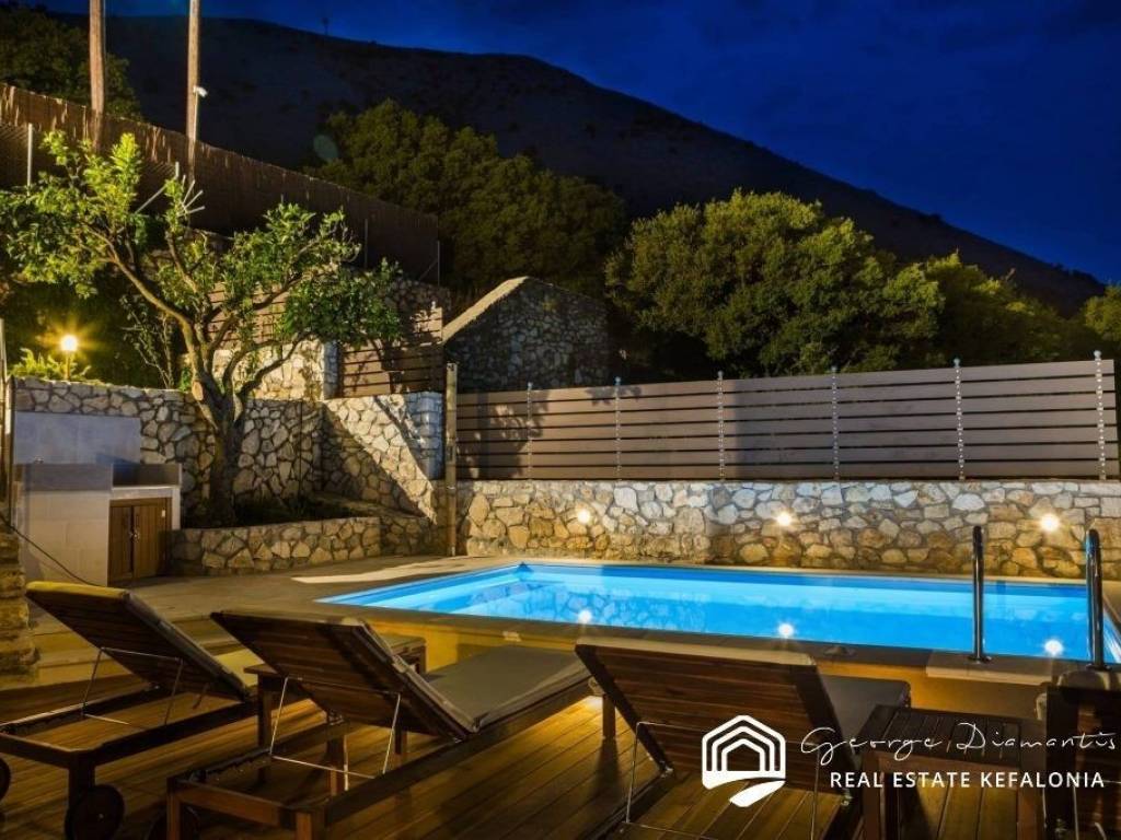 For sale a two-storey villa of 135.38 sq m, within a settlement in Drakopoulata, Pylaros. It is located on a plot of 271.71 sq m., even and buildable, and has a swimming pool and utility rooms. On the ground floor of the villa there is a dining room and kitchen, and a WC. On the 1st floor there are 3 bedrooms and 2 bathrooms. Its location makes it unique as it is located in a quiet environment, surrounded by greenery, with an unlimited view and is suitable for those who wish to enjoy peace and privacy. This is an investment opportunity since renting it out during the summer months can yield a good income. It can also be used as a holiday home. Drakopoulata is 2.5 km from the picturesque port of Agia Efimia, with its beautiful small beaches and its traditional market, with numerous shops, traditional restaurants, cafes, mini markets, bakeries, pharmacies, butchers, gift shops, etc. In less than 10 minutes, one can find the world-famous beach of Myrtos and the village of Divarata. The central market of Sami and the port, from which the island is connected to Ithaca, Patras and Aitoloakarnania, are approximately 13 minutes from Drakopoulata, while at the same distance is the magnificent beach of Antisamos and the beautiful caves of Melissani and Drogarati. For more information, contact us.