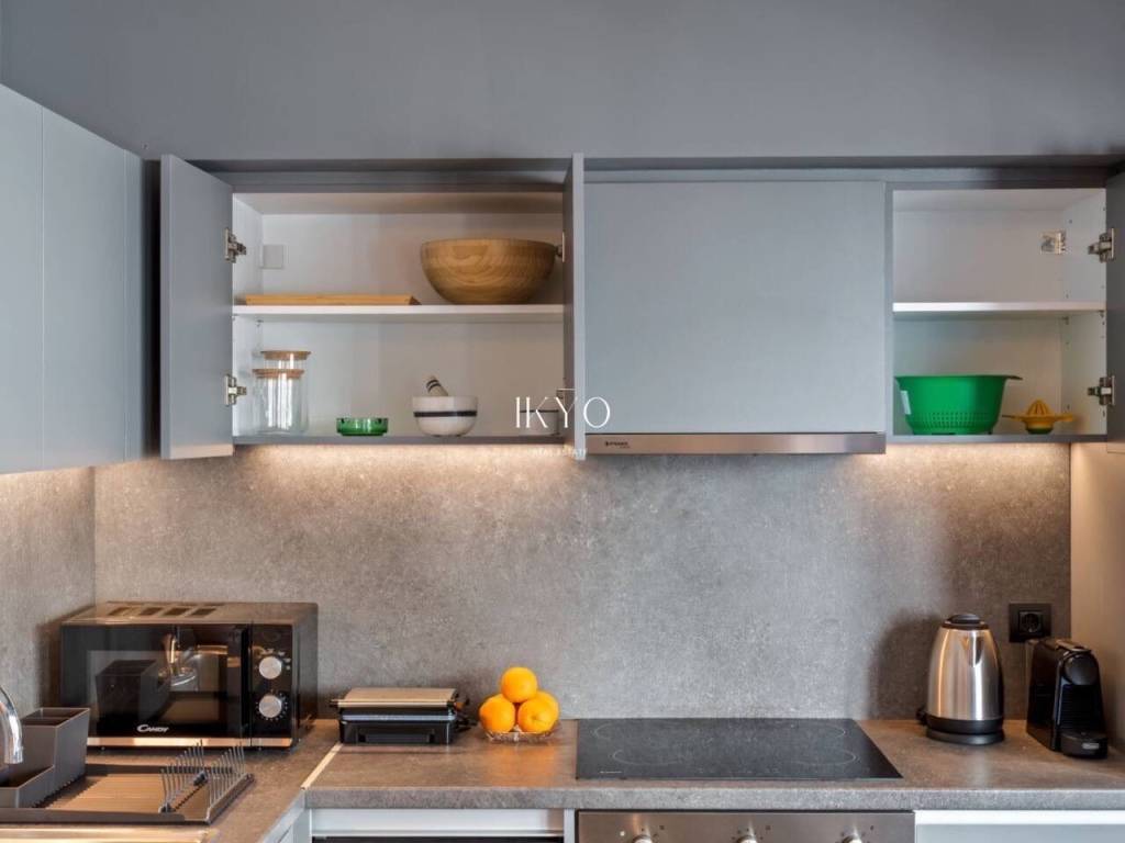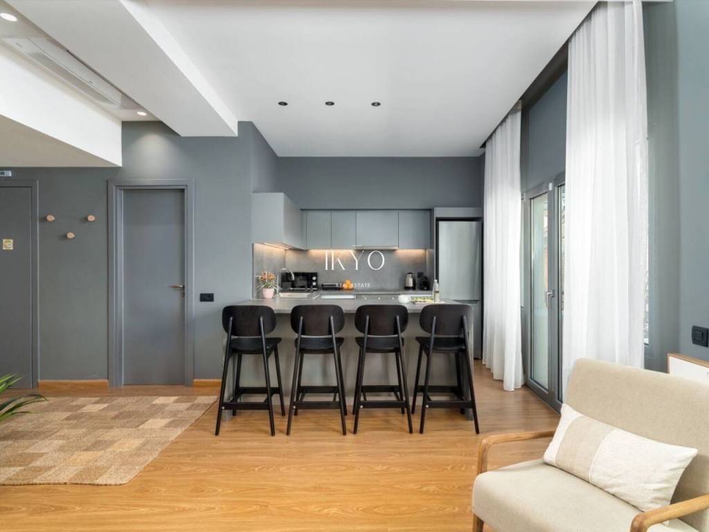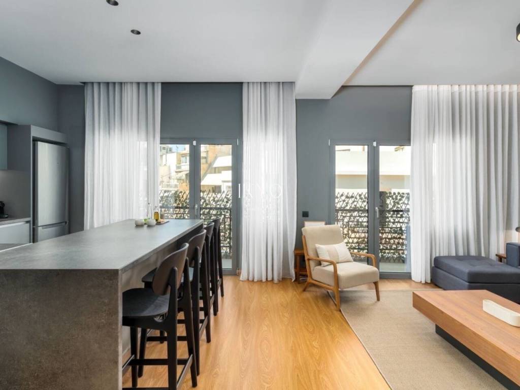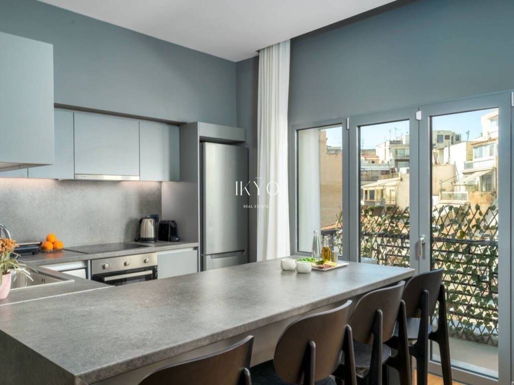 EXARCHIA For sale: an exceptional 78 sq.m. apartment. Fully reconstructed in 2023, in a building that has been entirely renovated to modern standards. This is a property that perfectly balances industrial style with Mediterranean warmth, offering a complete “turn-key” result, ready for immediate use with no additional investment required. The apartment is located on a high floor with abundant natural light, featuring two spacious bedrooms and two high-aesthetic bathrooms, while the spaces have been designed with emphasis on functionality and clean architectural lines. Oak-textured flooring, custom matte wardrobes, and the overall quality of materials create a calm, contemporary living environment. The kitchen and living area function as a single open space, with a striking stone-clad island as the central feature, serving as both a focal point and a practical everyday hub. Large double-glazed balcony doors open onto a private balcony, enhancing the connection between interior and exterior while providing brightness throughout the day. The two bedrooms have been designed with a focus on privacy and tranquility, featuring full-height built-in wardrobes, while the master bedroom stands out for its minimal character, refined lighting, and soft color palette. The bathrooms follow a modern aesthetic with stone finishes, vessel sinks, and high-quality matte details. The property is equipped with an air-to-water heat pump system (Daikin), covering heating, cooling, and domestic hot water with high energy efficiency, as well as a private basement storage room. It is sold fully furnished, with a complete aesthetic concept that meets modern residential or investment standards. It is located in one of the most vibrant and authentic areas of central Athens, with direct access to public transport, universities, and cultural landmarks. It is a clear choice for high-level owner-occupation or for investment with strong returns in either long-term or short-term rental.