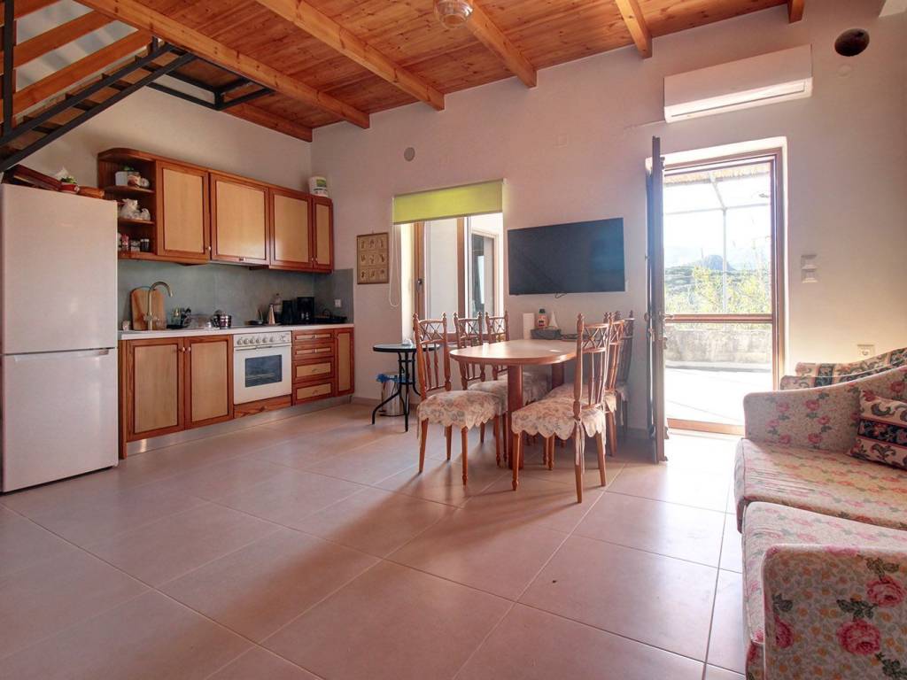 The house is in a verdant area south of the small town of Kissamos and in a picturesque neighborhood of 8 adjacent farmhouses, which share a lane along their frontages. The village is surrounded by countless olive groves and has panoramic views over the olive groves and up to the sea. The area is a good starting point for some of the most popular beaches of western Crete such as Balos, Elafonissi and Falasarna. In the nearby small town of Kissamos you will find all kinds of shops and services as well as a long sandy beach. The city and the airport of Chania are about 40 and 50 minutes' drive, respectively.
