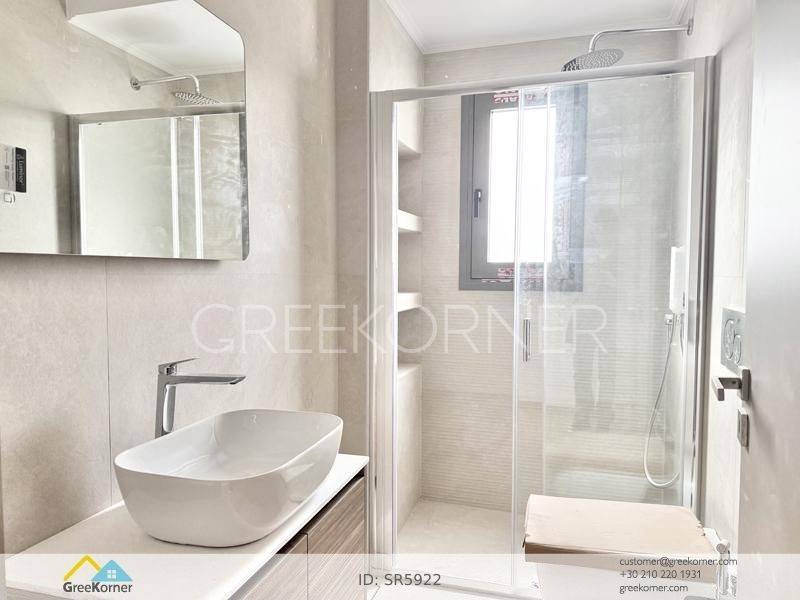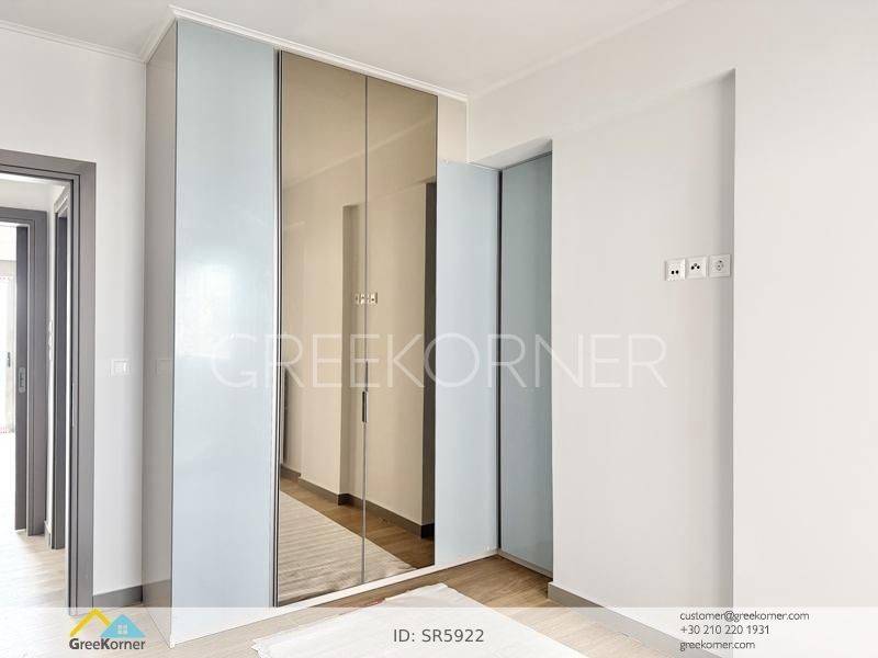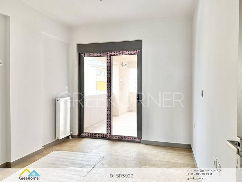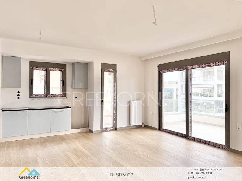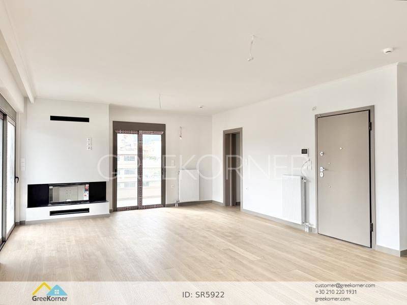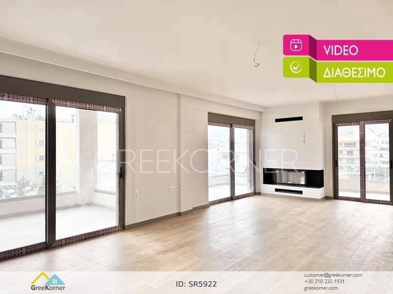 Holargos - Floor Apartment 133sqm bedrooms 3, master bedrooms 2, levels 1, 4th, newly built, year built 2026, energy class A+, living room, kitchen, semi-outdoor space, semi-outdoor surface area 17sqm, 3 bathrooms, heating type: individual unit (natural gas), parking open space+covered, quiet, dual aspect apartment, luminous, corner, panoramic view, frontage, painted, drop ceiling, electric roller shutters, storage space 10sqm, solar heater, boiler, fireplace, balconies, large balconies, balcony 60sqm, elevator, aluminum frames, double glazed windows, door screen, wood floors, handicap ramp, three phase electricity, secure door, video doorbell, luxurious, smart home, ev charger, internet, pets allowed, within city plan, residential zone, access from asphalt, close to market (up to 100m), close to bus stop (up to 100m), close to metro/train (up to 200m).