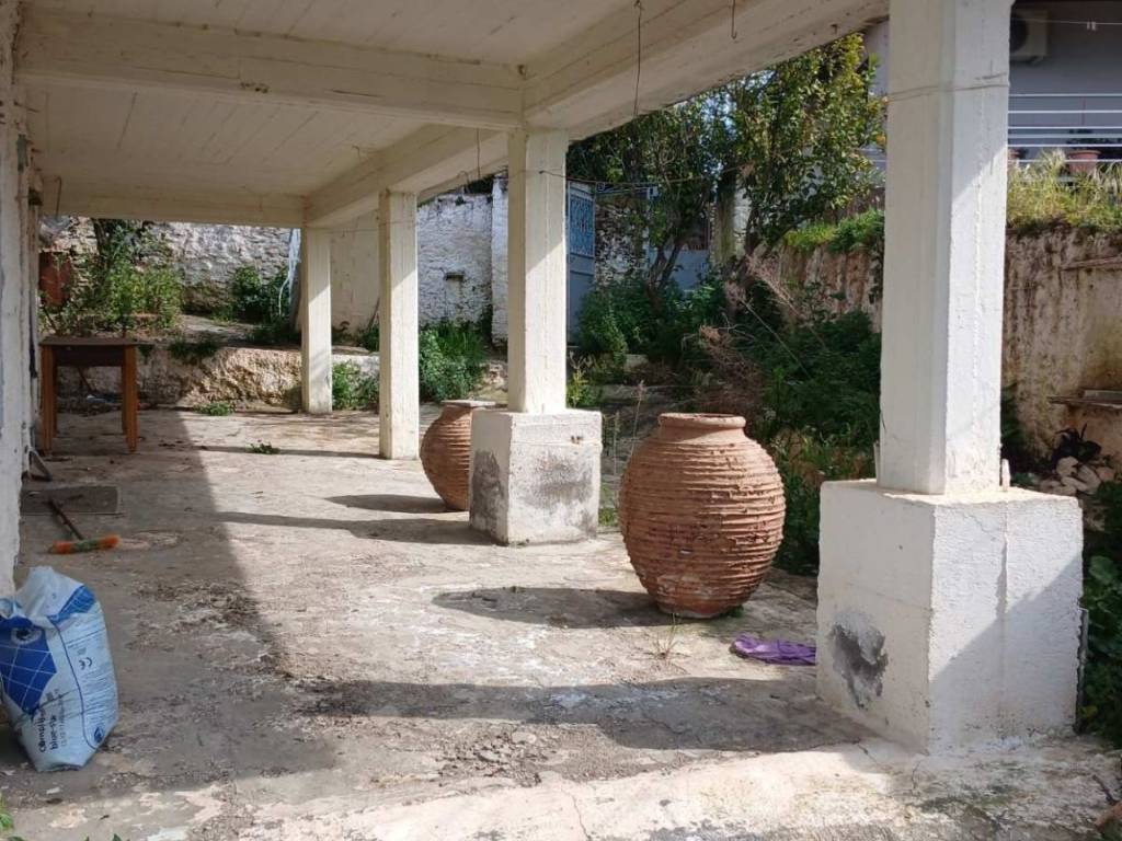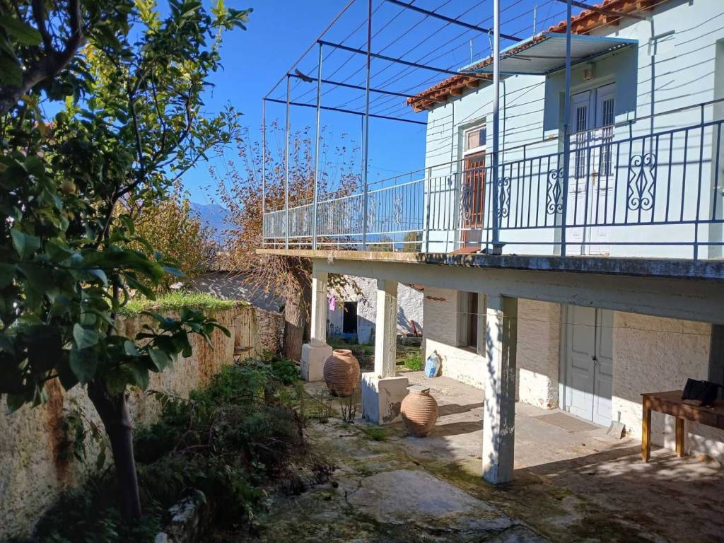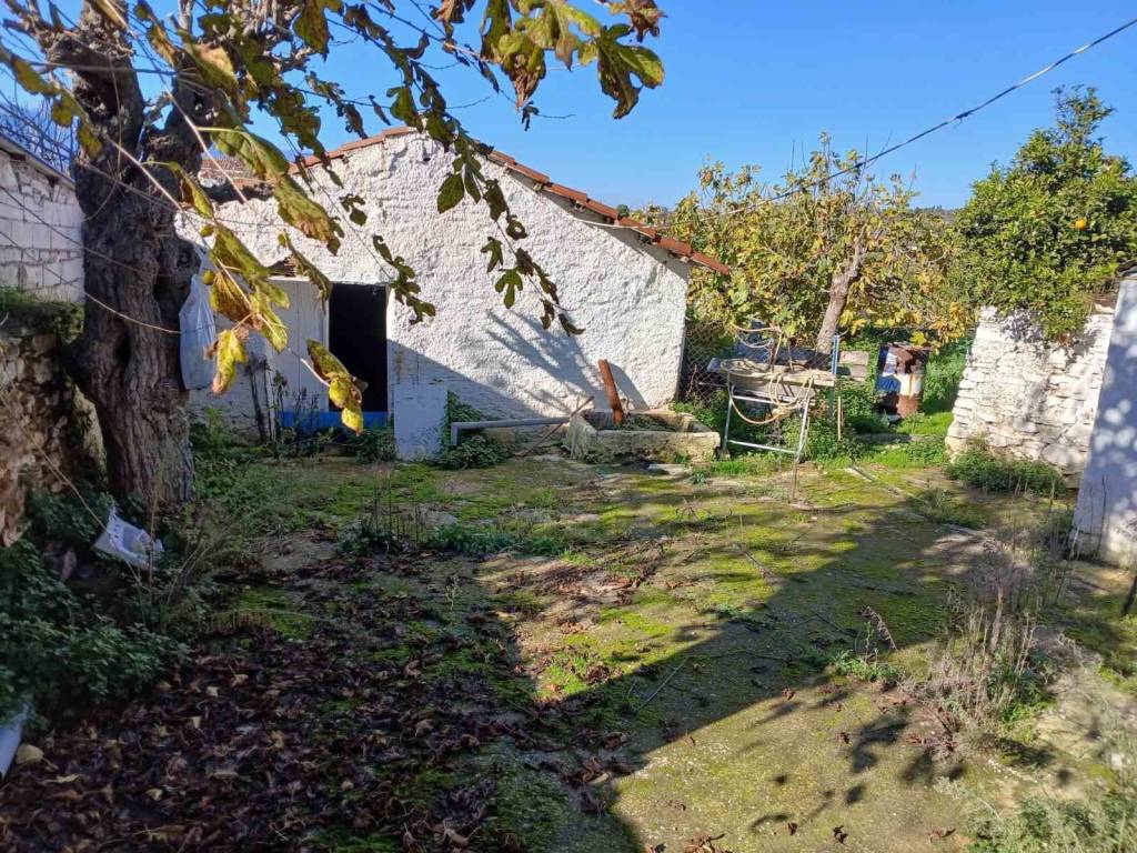 Detached house with a ground and first floor, located in the center of the village. The property has a spacious garden with olive trees, as well as two storage units measuring 41 and 26 square meters, respectively. The property is fully compliant with all legal requirements. Established electricity and water supply. Please note that the full extent of the garden and the land extending behind the property may not be fully captured in the photographs.