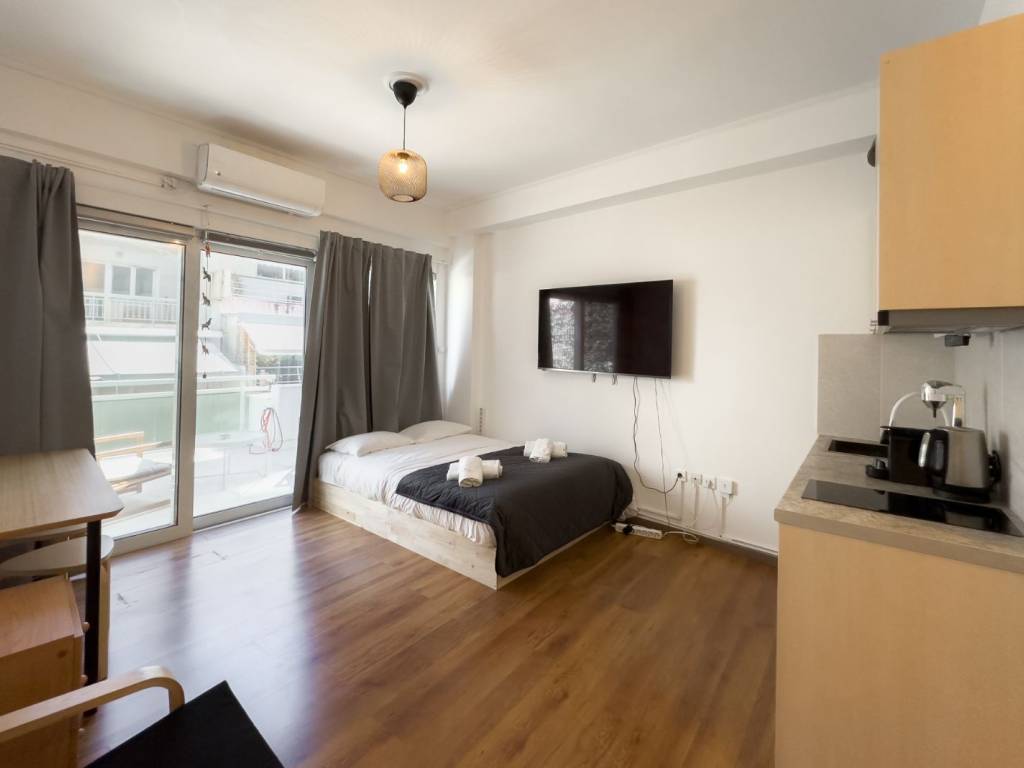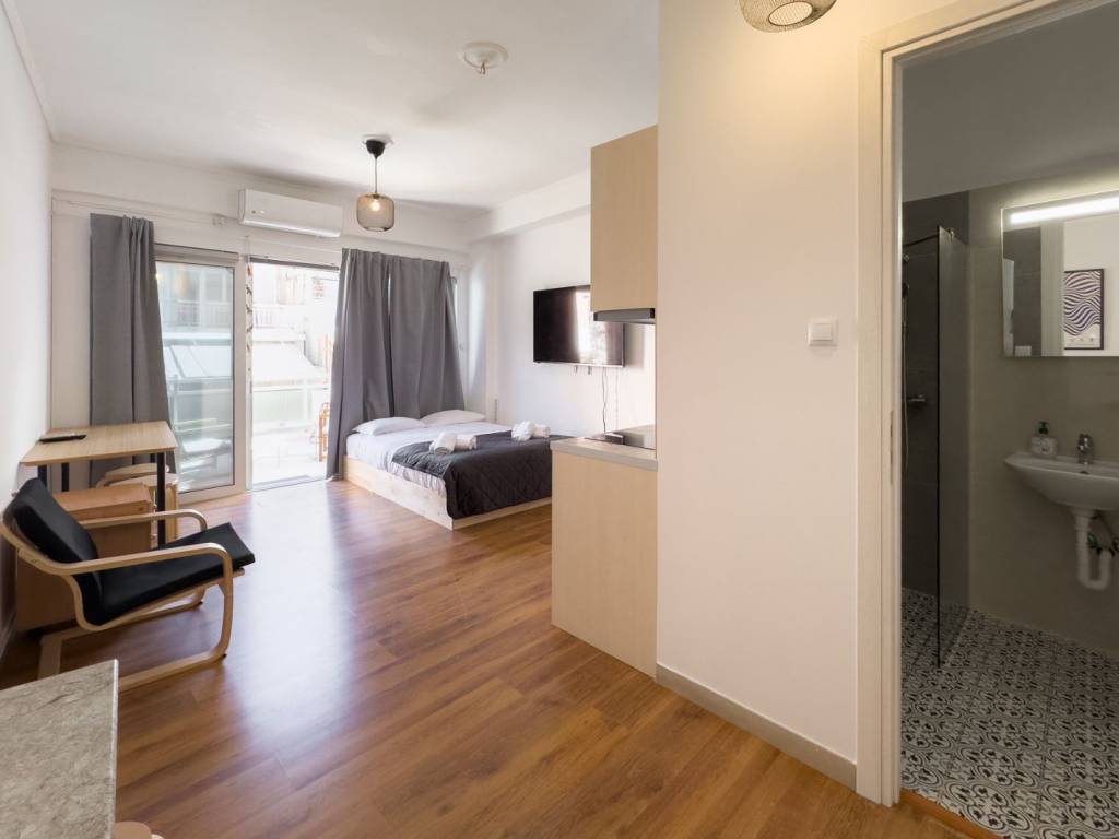 For sale furnished 4th floor studio 26 sqm (currently Airbnb) in Benaki and Acadimias junction, Exarcheia (quiet byroad parallel to Acadimias). 1977 building- 2025 renovation, spacious veranda, fiber internet. 15 min by foot from Monastiraki, Syntagma and Kolonaki. Served by Omonia, Panepistimiio and Exarcheia metro stations