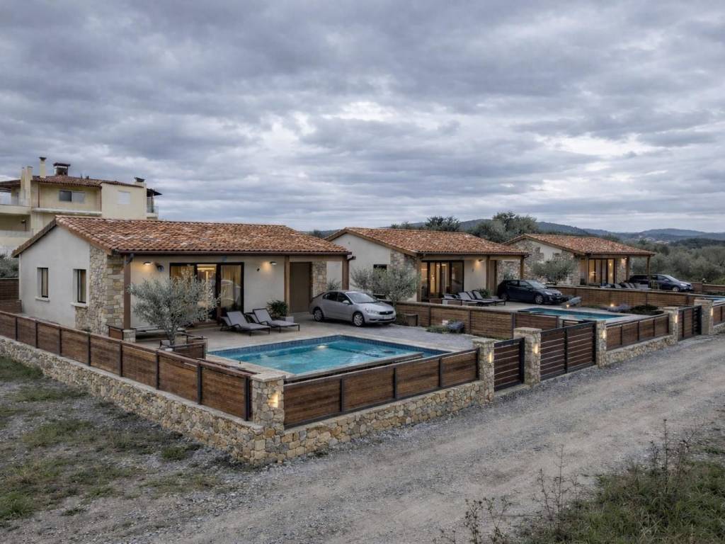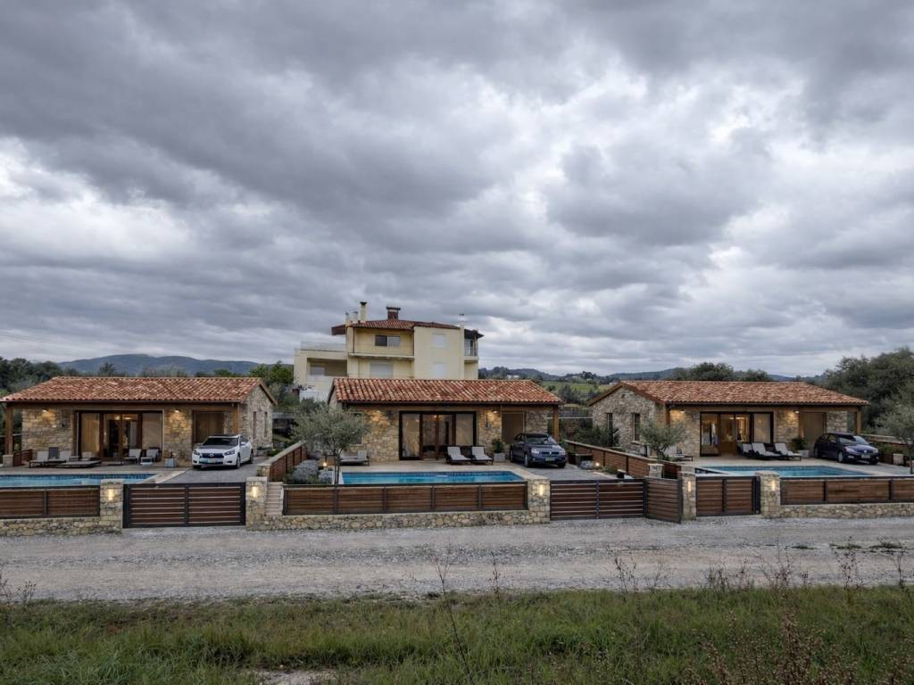 A project of 3 houses, each house with a private pool, each house measuring 80 square meters on a 320 square meter plot, excellent location, distance from the sea 500 meters