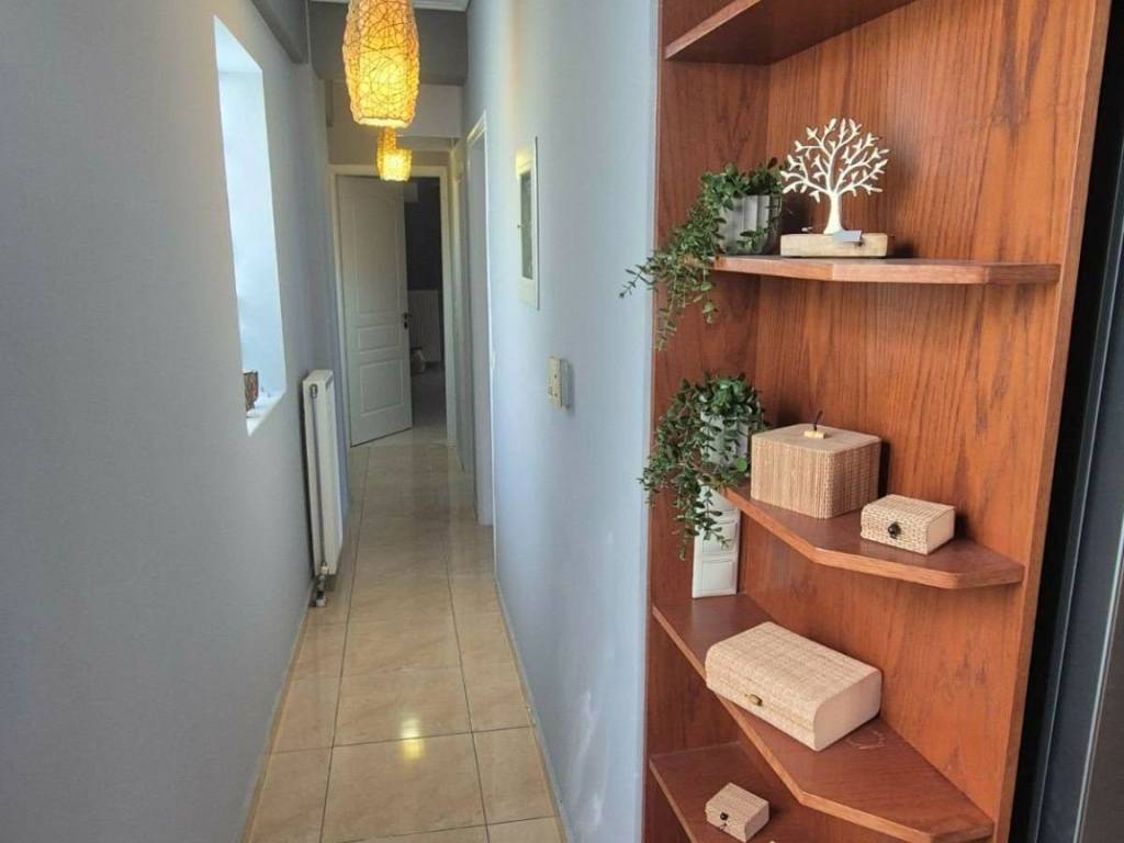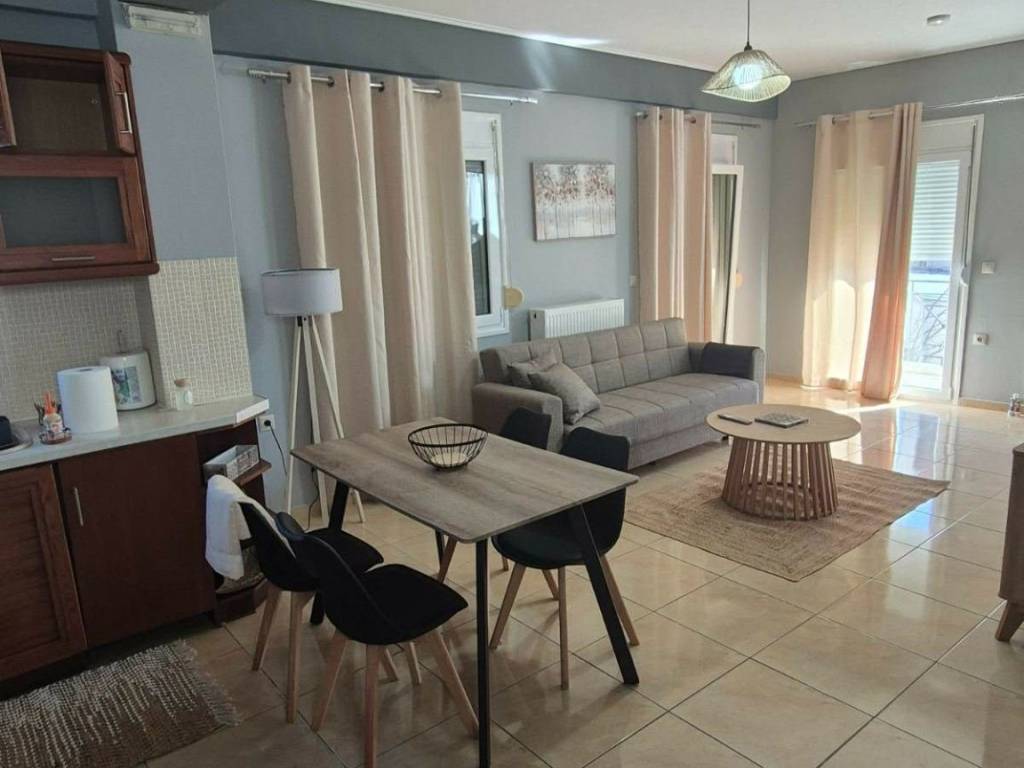 This contemporary apartment is fully furnished, featuring central heating and air conditioning, and is ready for immediate occupancy. Upon entry, you are greeted by a spacious living room connected to the kitchen, followed by two bedrooms and a bathroom. Each room, as well as the living room, has its own balcony. Constructed in 2010, the building is situated in a tranquil area of Varia, just 5 minutes from the airport and 200 meters from the sea.
