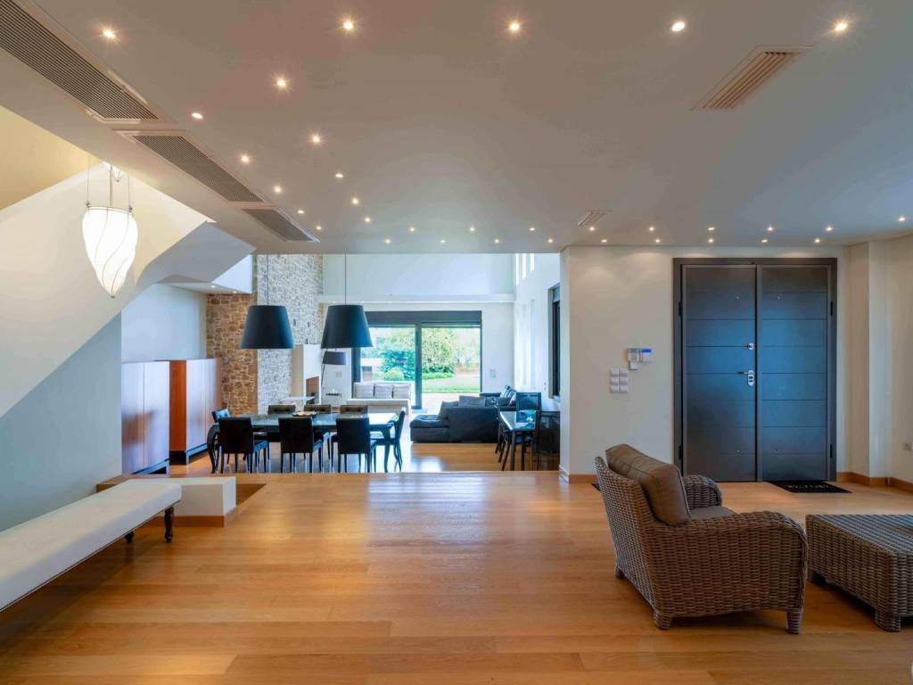 One of the best detached houses in Porto Rafti, and this conclusion comes from the excellent initial location of the plot, just 120 meters from the sea, in a quiet spot, elevated from the road with easy walking access to the very beautiful beach, dining areas, schools, and S.Market. In front of it, there is a pedestrian path under construction towards the beach, a communal space, and guaranteed sea view. At the same time, it is one of the few large plots in the wider area. As the visitor arrives from outside and climbs 2-3 steps, they feel in a space of tranquility and relaxation, and of course, this is offered by the greenery and the water of the pool that glistens in the sun's rays. Moving towards the main entrance of the house and entering, the result is a constant surprise in every space we find ourselves in. Spacious living rooms with high ceilings, changes in colors, and integration of the natural environment with the construction. The stone and wood are something exceptional that blend with the most modern living room furniture. A little further is the family's daily dining room with an additional modern touch. The kitchen is properly structured, providing the housewife with all conveniences and equipped with all electrical appliances from well-known companies. The surprises do not stop when we naturally take the elevator to the upper floor where there are three bedrooms, each with its own unique style. Also, the two large bathrooms for the convenience of the owners. There is also the Rooftop which is configured as an office space and upon exiting to the exterior space, you encounter the impeccable view that unfolds in front. Also, at the bottom of the house, there is a very nice independent apartment that includes a living room, dining room, kitchen, bedroom, and bathroom which overlooks the greenery of the back garden. The raw materials are the best that could be utilized on the property. The purchase of the property represents the mature choice of candidates investing in its impressive atmosphere, sociability, comfort, quality, ideal location, and uniqueness. The property collectively offers 5 bedrooms, 3 bathrooms, 2 living rooms, 2 kitchens, 3-5 parking spaces, a 45 sqm pool with overflow and jet stream, air conditioning, underfloor heating, elevator, 3 fireplaces, storage, gym, BBQ, alarm, electric shutters. Porto Rafti is located 7 kilometers east of Markopoulo, on the southern shores of the South Euboean Gulf, and borders to the north with Athens Airport, while it is approximately 40 kilometers from the capital. The bay of Porto Rafti includes 3 islets (Rafti, Raftopoula, Praso) and coasts from Erotospilia to Avlaki. Unique Features: Porto Rafti today is one of the most well-known resorts of Eastern Attica, offering natural beauty thanks to its beautiful beaches with crystal-clear waters, while one can enjoy rich water sports activities. Additionally, it is characterized by its rich history, as it includes the historically significant archaeological site of Vravrona with its famous ancient temple. During the summer months, the area is lively with numerous cafes and is renowned for the gastronomic delights offered by its numerous tavernas, as well as for the quality entertainment and nightlife. Finally, the small port of Porto Rafti is a little gem and an ideal place for walks by the sea. Accessibility: It is accessible via the Attiki Odos, the coastal avenue, and the nearby metro and suburban railway stations "Koropi". Investment Potential: Due to its rich natural beauty as one of Athens' most popular tourist resorts and its relatively close distance from Athens, Porto Rafti has become attractive to real estate investors as property prices are favorable, offering a good return on investment.