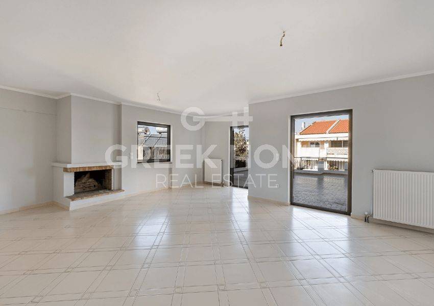 Agia Paraskevi (Attica - Northen Suburbs), Stavros - Apartment 146sqm bedrooms 3, 4th, renovated, year built 1984, renovation year 2024, energy class F, living room, kitchen, 2 bathrooms, wc, heating type: autonomous (natural gas), parking ground floor, quiet, dual aspect apartment, unobstructed view, frontage, storage space 12sqm, fireplace, aluminum frames, door screen, wood & tile floors, secure door, east-western orientation.