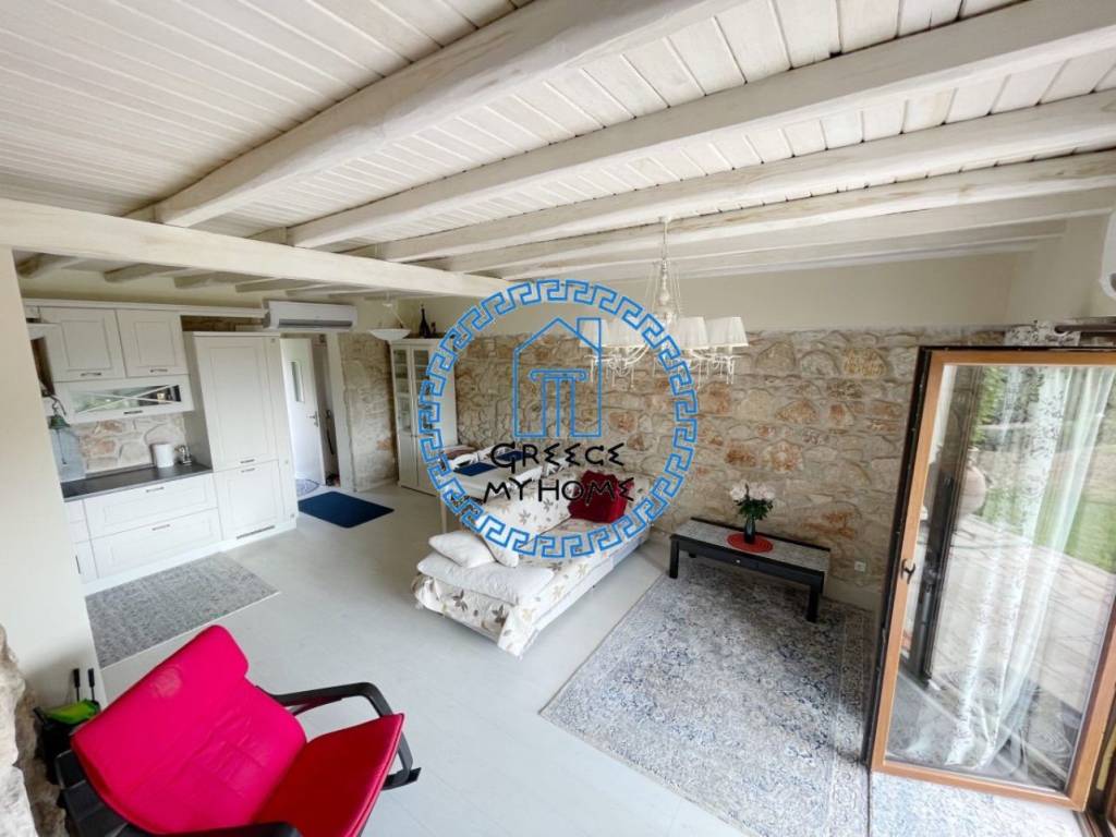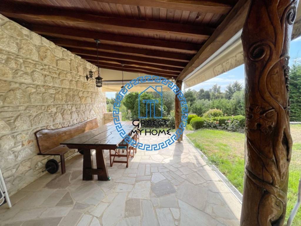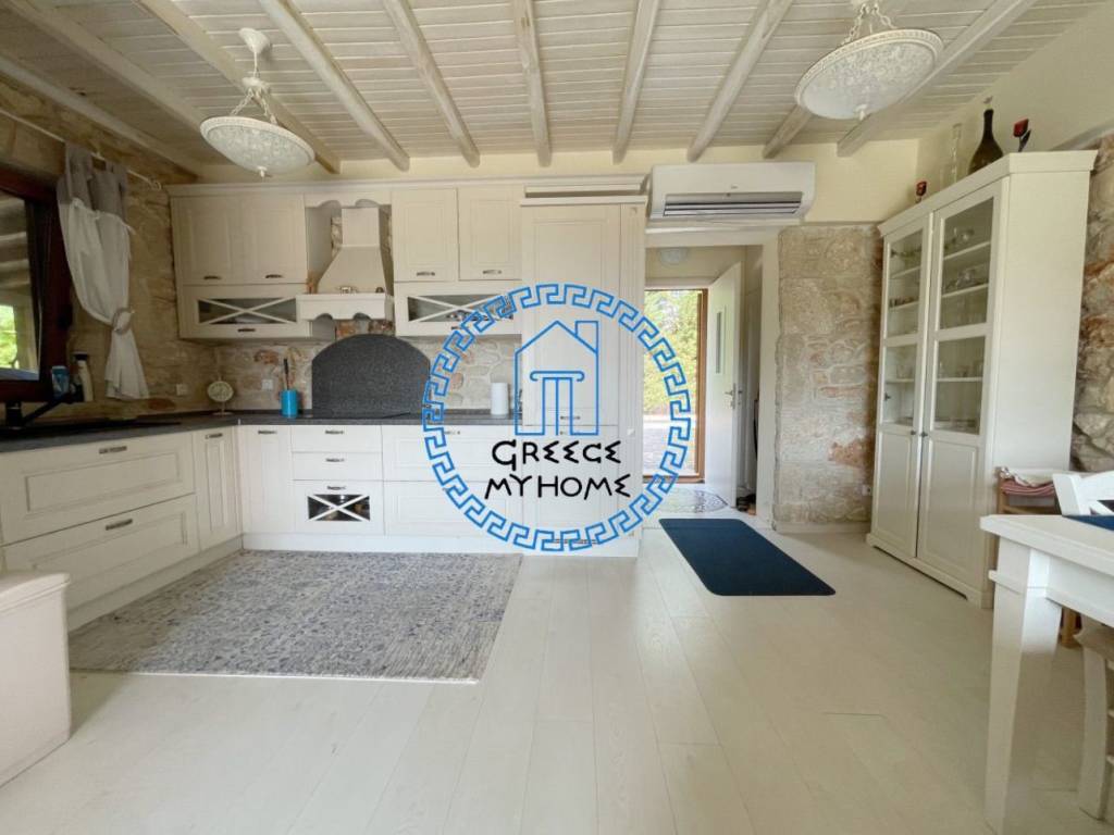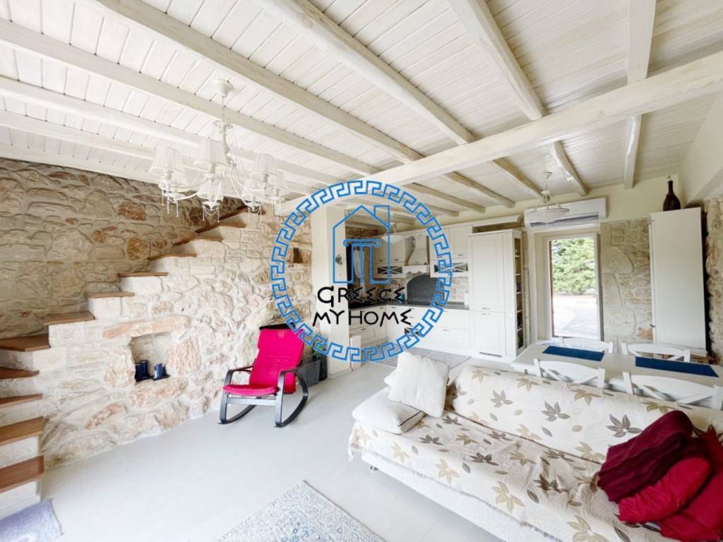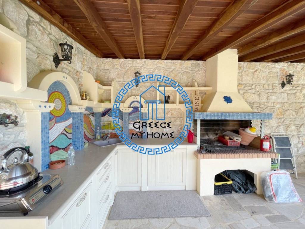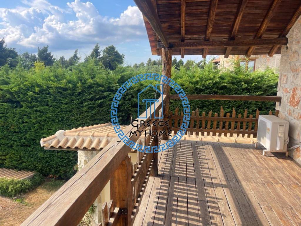 Kriopigi, Halkidiki, available for sale in a gated residential complex, a fully furnished detached house with an amazing view, total area 130 sq m. The property consists of 3 bedrooms, living room, kitchen, 3 bathrooms/wc.It also has air conditioning, solar water heater, outdoor kitchen with bbq area, storage room, garden with fruit trees and olive trees, extra water storage tank, pre-installation for a heat pump and parking. The distance from the beach is 1700 m. and from the village center 600 m. For more information and appointments, contact our office.