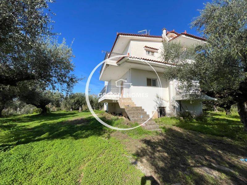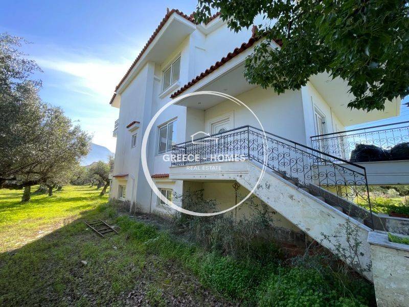 Set on an impressive 4,017 sqm corner plot in the sought-after area of Farai, Kalamata, this two-level residence of 164 sqm offers a unique opportunity for international buyers seeking an authentic Mediterranean lifestyle or a high-potential investment. The property enjoys frontage on a recognized provincial road, ensuring easy and direct access while maintaining a sense of privacy and tranquility. Within just a few minutes, you can reach Kalamata’s city center, marina, and beautiful beaches, perfectly combining a countryside atmosphere with urban convenience. The residence is arranged over two levels of 83 sqm each. The elevated ground floor features a spacious kitchen, a bright living room with fireplace, a guest room, and a WC. The upper floor consists of three comfortable bedrooms with access to large verandas, a central bathroom, and an additional lounge area with its own private terrace. What truly sets this property apart are the expansive wraparound verandas offering unobstructed panoramic views of the sea and the majestic Taygetos mountains—ideal for relaxing, entertaining, and enjoying the Greek sunset. Additionally, there is an independent 83 sqm semi-basement level with natural light and a separate entrance, offering multiple possibilities such as a self-contained apartment or storage space, significantly enhancing the property's value. Key Highlights: • Large 4,017 sqm plot (buildable) • 164 sqm residence + 83 sqm semi-basement • Unobstructed sea & mountain views • Prime location with easy access to city & beaches • Strong investment potential A rare opportunity combining size, location, and views—ideal as a permanent residence, holiday home, or investment project in one of Kalamata’s most up-and-coming areas.