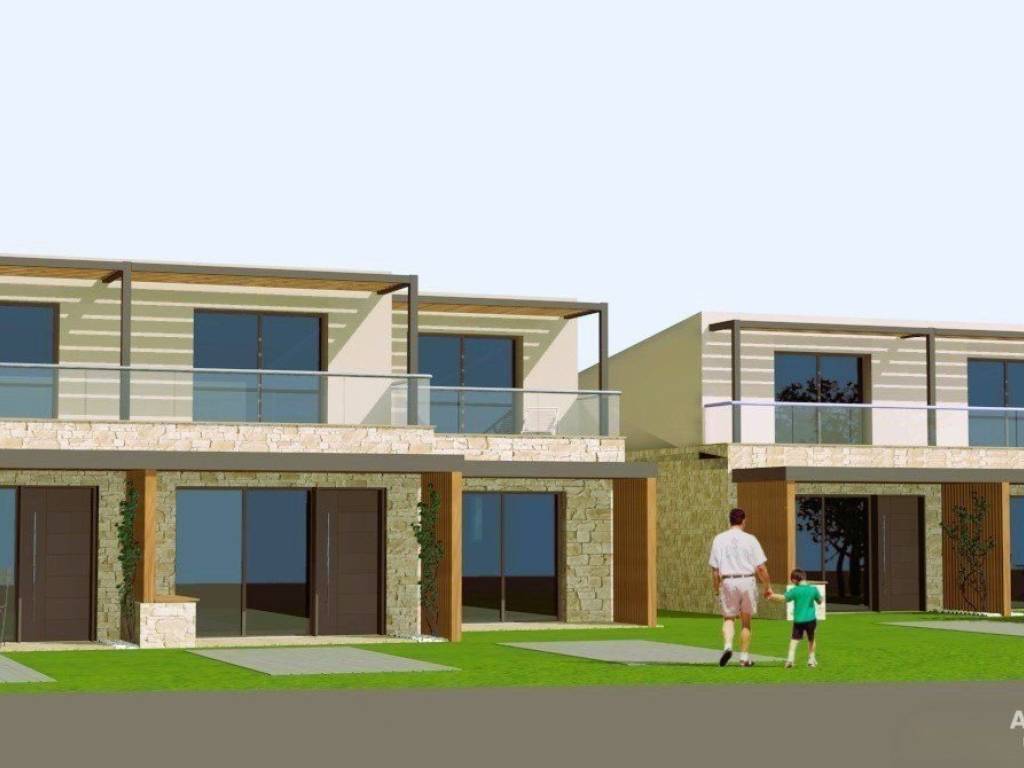 NEA KALLIKRATIYA HALKIDIKI - FOR SALE wonderful bright with external stone covering, maisonettes, in a newly built complex of 5 maisonettes, 81sqm each, with their own yard, 500 meters from the beach, On the ground floor we find an open plan living room, a room, and a bathroom. On the upper floor there is a large room, storage room and a bathroom. Luxurious construction, armored door, double glazed aluminum frames. electric shutters, screens, tiled floors, wardrobe. The maisonettes are smart homes with Wifi, energy class A+, have a parking space with a remote-controlled entrance door, BBQ. They have kitchen and bathroom furniture, alarm and cameras. They are equipped with all electrical appliances and 3 air conditioners. Solar water heater. Underfloor heating with individual heat pump. They are located in a privileged location near the center of N. Kallikrateia, in an area with holiday homes and hotels. It is an excellent investment proposal, but also a residence for a pleasant stay and enjoyable holidays. open parking spaces 1, distance from the beach 500, painted, terace, type of glass duble, energy class A+, build in BBQ, inside settlement, inside city plan, country house, investment, floor heating, indoor lader, solar water heater, garden, air conditioning, frames aluminium, equiped, newly built, luxury home, security door, access asphalt, facade, insect screen, alarm, flooring type tile, garden type private garden, bright
