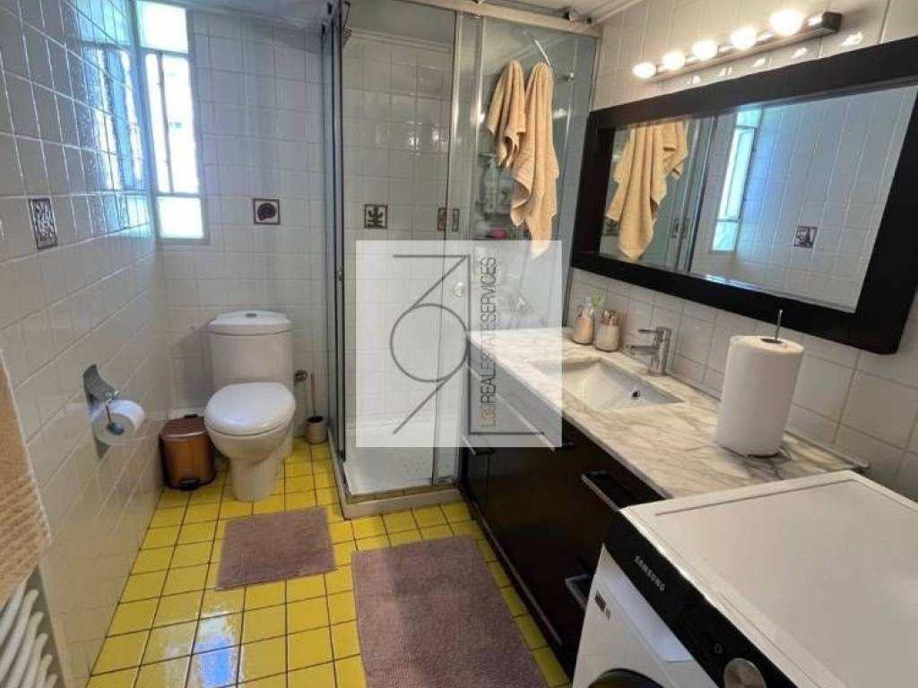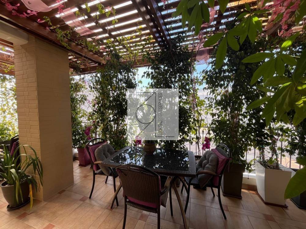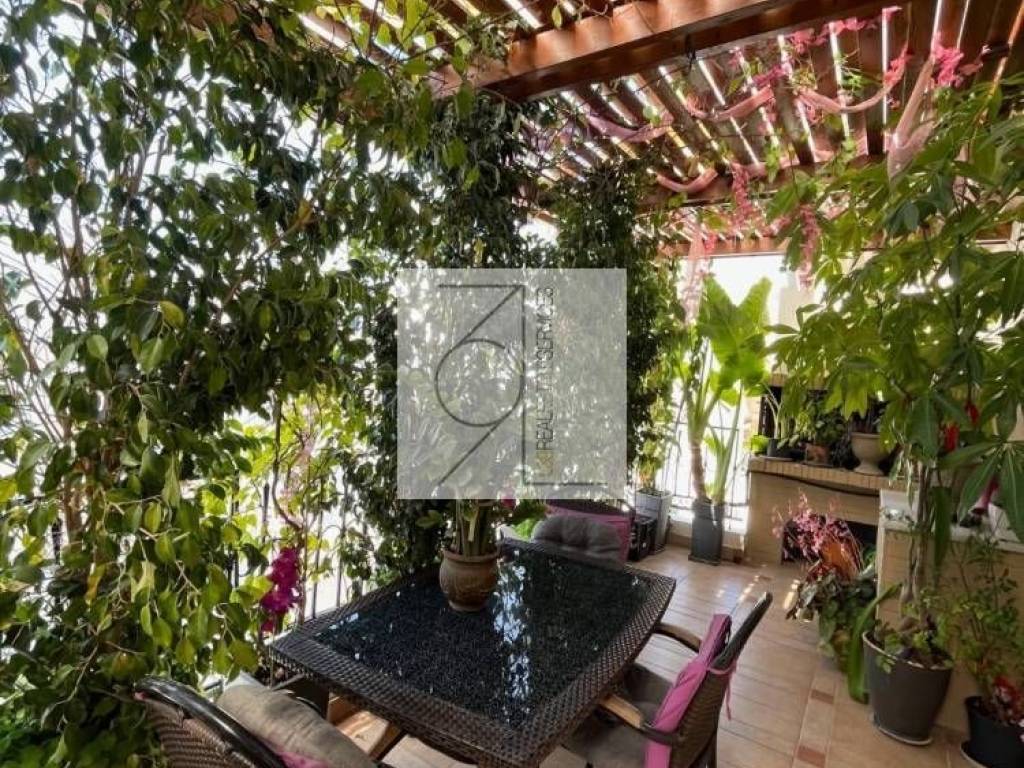 This property features a high-ceilinged living room with tiled roof, fireplace, open-plan dining room, kitchen with cherry wood cabinets, built-in Bosch appliances, 2 bedrooms with built-in wardrobes, 1 cherry and 1 beech. 1 bathroom. Large front green veranda with wooden pergola, 30 square meters with built-in Barbeque and gas bench. Private roof terrace of 60 square meters, air conditioning in all rooms. The building has an elevator.