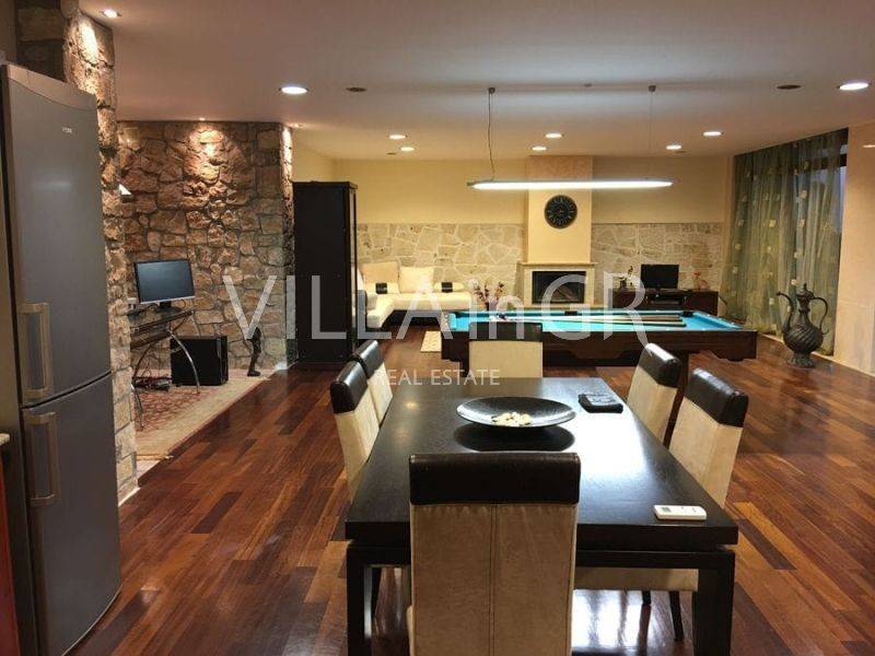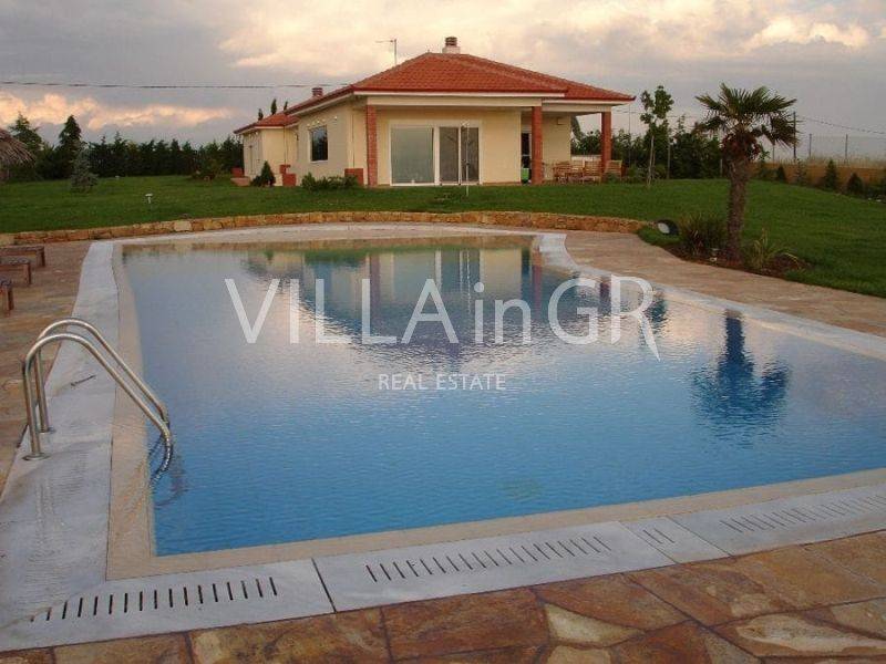 Property Code: 87-6847 - Villa FOR SALE in Epanomi Center for € 1.000.000 . This 365.00 sq. m. furnished Villa is on the Ground floor and features 5 Bedrooms, an open-plan kitchen/living room, 5 bathrooms . The property also boasts Heating system: Individual - Petrol, tiled floor, unobstructed view, Window frames: Aluminium, Security door, parking, a storage unit sqm, garden, fireplace, jacuzzi, A/C, electrical appliances, double-glazed windows, BBQ, open space. The building was constructed in 2002 . Building Energy Rating: B