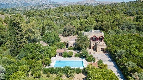 For Sale Villa, Chios Chora 330sq.m ,Ground floor , 2 level/s ,4 Bedroom/s ,3 bath/s , features: Internal Staircase, Balconies, Pets Allowed, No shared expenses, Stonehouse, Mansion, Airy, Roadside, Bright, Trees, Swimming pool, Back yard (Garden), Suitable for Commercial Use ,  price: 1.800.000€