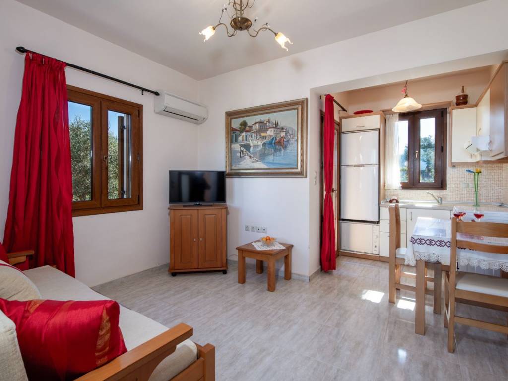 The house is 55 square meters and offers accommodation up to 3 persons. It has 2 bedrooms (a double bed and a single bed), fully equipped kitchen, a bathroom with shower and bathtub, air conditioning, mosquito screens, satellite smart TV, wi-fi connection, veranda and large balconies. The house is surrounded by olive trees and flowers, while the scents of our botanical garden enter the windows of the sunny rooms. On your terrace, you can enjoy your meal or your drink captivated by the beauty of nature and our beautiful well-kept garden. On the other hand, you can cool off in the swimming pool and enjoy moments of relaxation while sunbathing. The house is only 20 minutes from the center of Rethymno and about 1.5 km from the nearest beaches in the area. Nearby you will find a mini-market and shopping market. FACILITIES Air conditioning, Satellite TV , Wi-fi (free access), small dishwasher, Cooker, Fridge, Freezer, Washing machine, Clothes lining, Kettle, Coffee machine, Toaster, Iron, Ironing board, Hair dryer, cooking utensils. Balcony / Terrace, Shared outdoor pool (unheated), Shared garden, garden table and chairs, Access: car is essential, free parking space onsite.