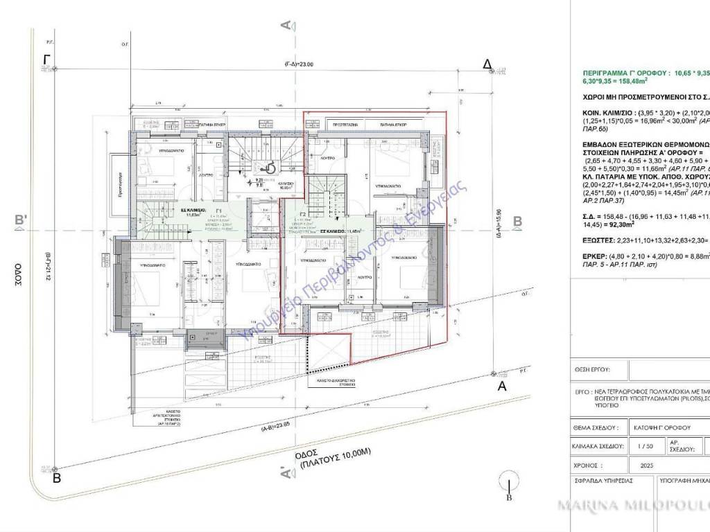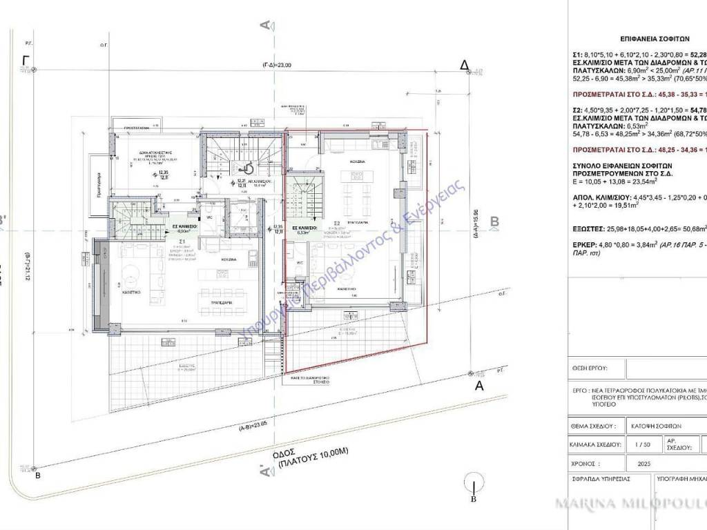 Glyfada, Pιrnari – in a buliding under construction (demolition stage), a corner maisonette on the 3rd and 4th floors, 132 sq.m, Northeast orientation. - 3rd Floor: 74 sqm, 3 bedrooms, one of which is a master bedroom, plus 1 bathroom. All bedrooms have access to balconies. - 4th Floor, 58,5 sqm, accessible both by internal stair and directly from the building elevator. This level features a reception / dining area, open-plan kitchen, and 1 wc. It also offers a north-facing front veranda with seaview and 2 balconies west facing with sea views. It is part of a 4-storey building, with a total of 5 residences, energy efficiency class A+. The property includes autonomous natural gas heating, solar panels, provision for underfloor heating, oak flooring, and the option for the buyer to select construction/decoration materials. It also offers 2 basement parking spaces and a large basement storage room. Zone price: €2,550/sqm. Located in a quiet residential neighborhood, at an elevated point near the foothills of Mount Hymettus, just 370 meters from the local market on Gounari Ave, 2.5 km from Glyfada’s shopping area and the beach, 5 km from the Ellinikon Metropolitan Park, and 25 km from the intern airport. Estimated delivery: 02 / 2028.