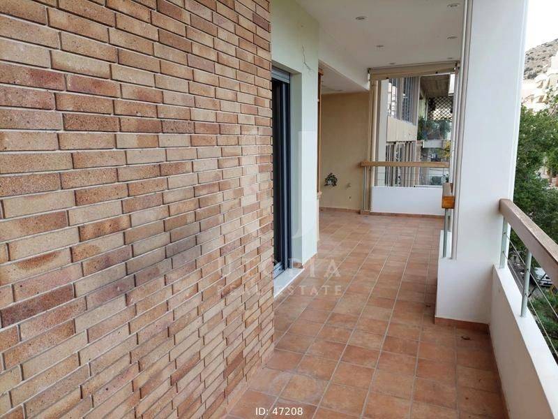 Keratsini - Apartment 102sqm unfurnished, bedrooms 3, levels 1, 2nd, excellent condition, year built 2012, energy class D, living room, hall, kitchen, bathroom, 2 wc, heating type: autonomous (natural gas), air condition, parking covered, quiet, dual aspect apartment, luminous, unobstructed view view, frontage, storage space, fireplace, balconies, large balconies, balcony 28sqm, tents, elevator, aluminum frames, double glazed windows, door screen, wood & tile floors, secure door, residential zone, access from asphalt, close to market (up to 500m), close to square (up to 200m).