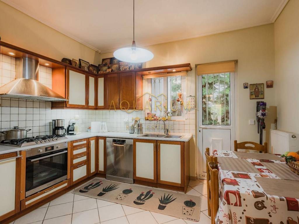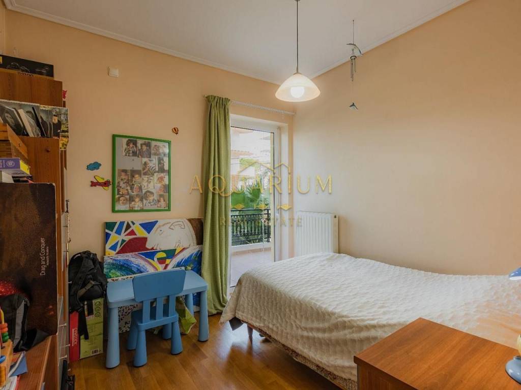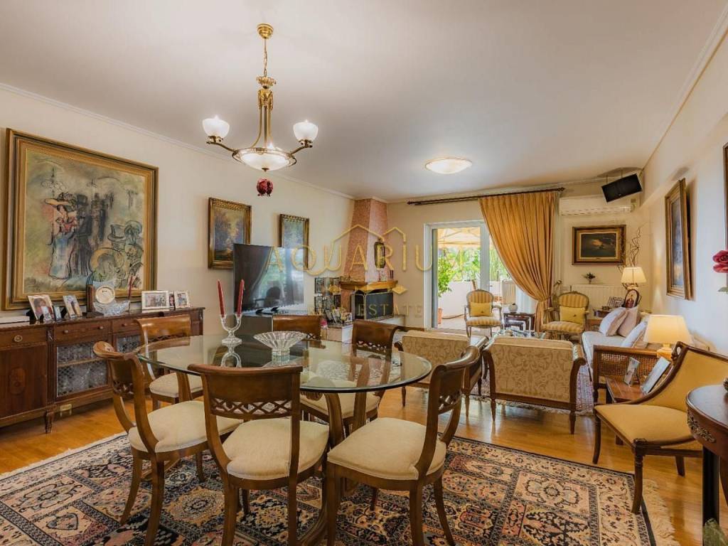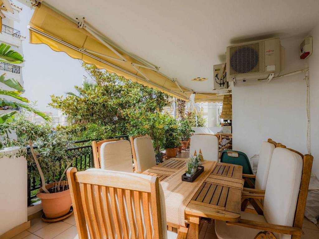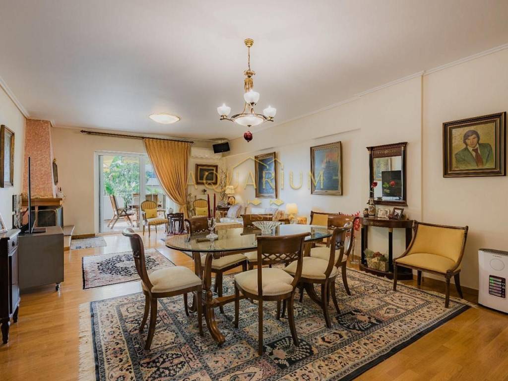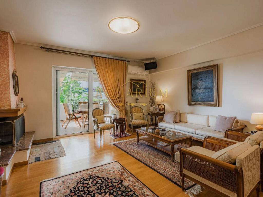 GLYFADA-upper area , in a well maintained building, there is this 1st floor apartment of 140 sq.m. It Consists of a reception area, living room with fireplace, dining room, kitchen, 4 bedrooms, 1 bathroom, WC, large terrace with BBQ It has a storage room of 9 sq.m. and 1 parking space. Autonomous Gas heating, excellent wooden floors, alarm system, solar water heater, well in the plot, nice garden, 15 flats in total. It is located close to schools, parks, next to the Gounari market and is just 7 minutes from the Elliniko Metro station.