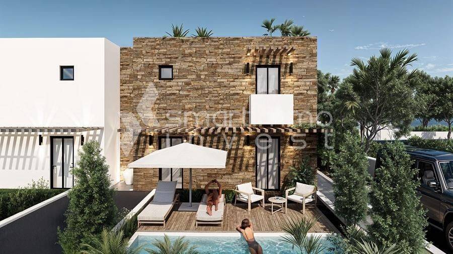 Antiparos, Agios Georgios - Detached House 100sqm fully furnished, levels 2, under construction, energy class A+, living room, kitchen, air condition, quiet, dual aspect apartment, luminous, sea view, painted, balconies, garden, garden 90sqm, secure door, luxurious, internal staircase, jacuzzi, residential zone, investment property, special offer.
