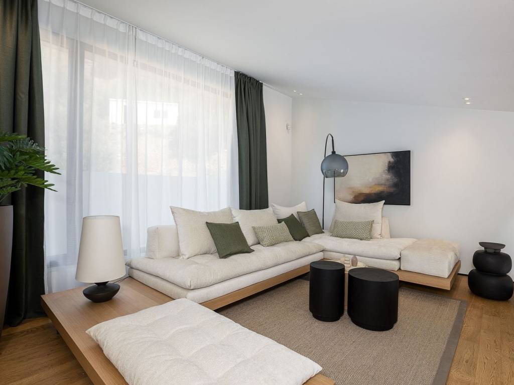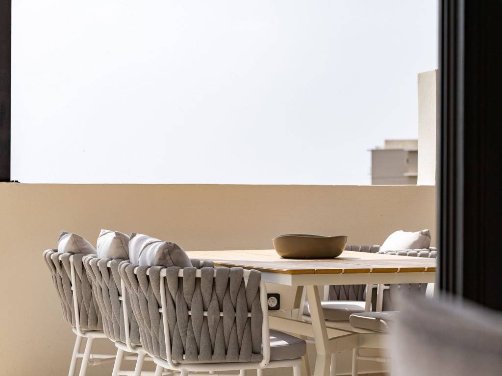 The main living area features a bright, open-plan layout that seamlessly combines the living room, dining area, and kitchen into a stylish, welcoming space. Both the master and the second bedroom are located on this floor, and both have en-suite bathrooms. The master bedroom also features a private exterior shower room on one of the light alleys, offering the option to rinse off and refresh in the open air, in complete privacy.