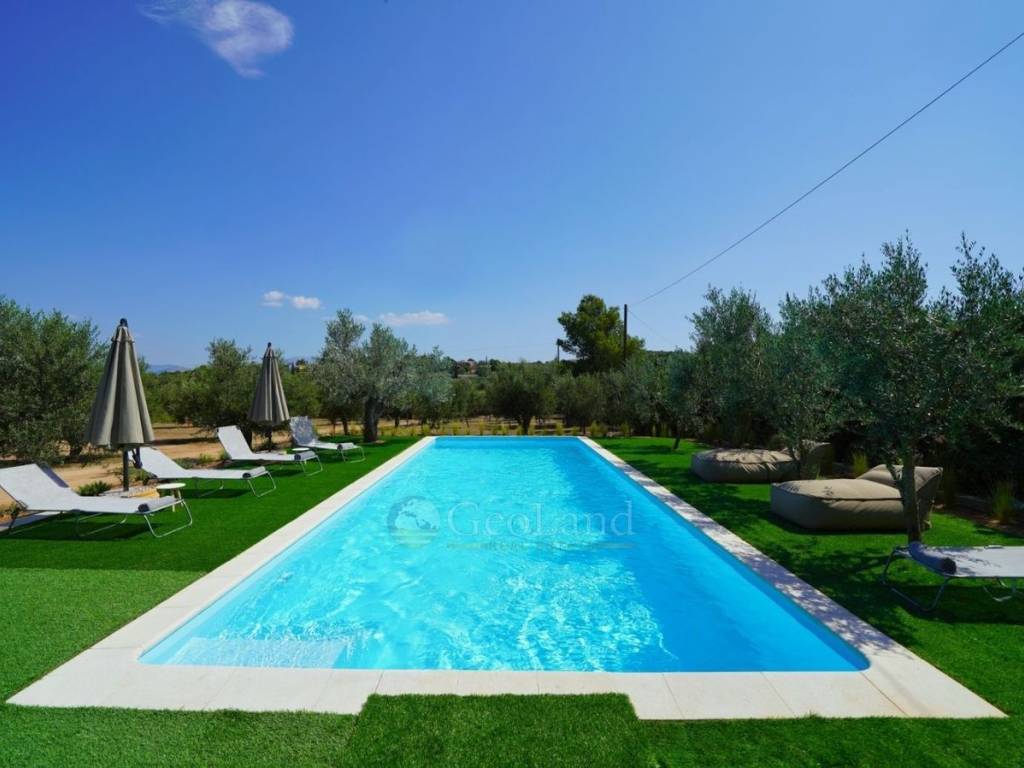 The villa has been constructed with top-quality materials and meticulous attention to detail, offering an ideal balance between traditional and modern style. The spacious outdoor areas, the absolute autonomy of the bedrooms, and the unique location amidst olive trees make this an exceptional proposal for a permanent residence or a holiday retreat.It is a true haven for nature and privacy lovers, combining luxury, tranquility, and authentic Greek beauty.