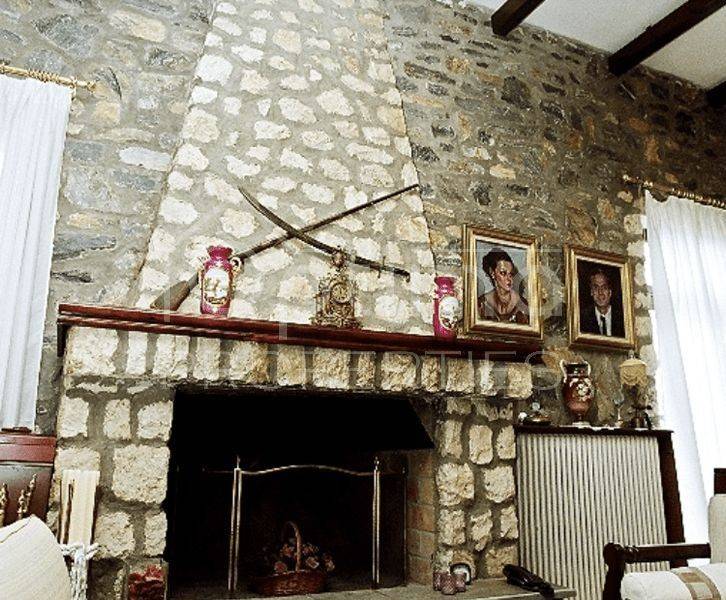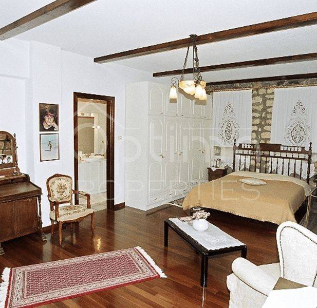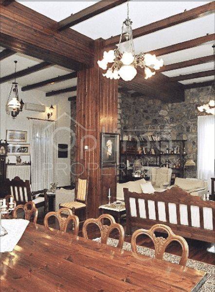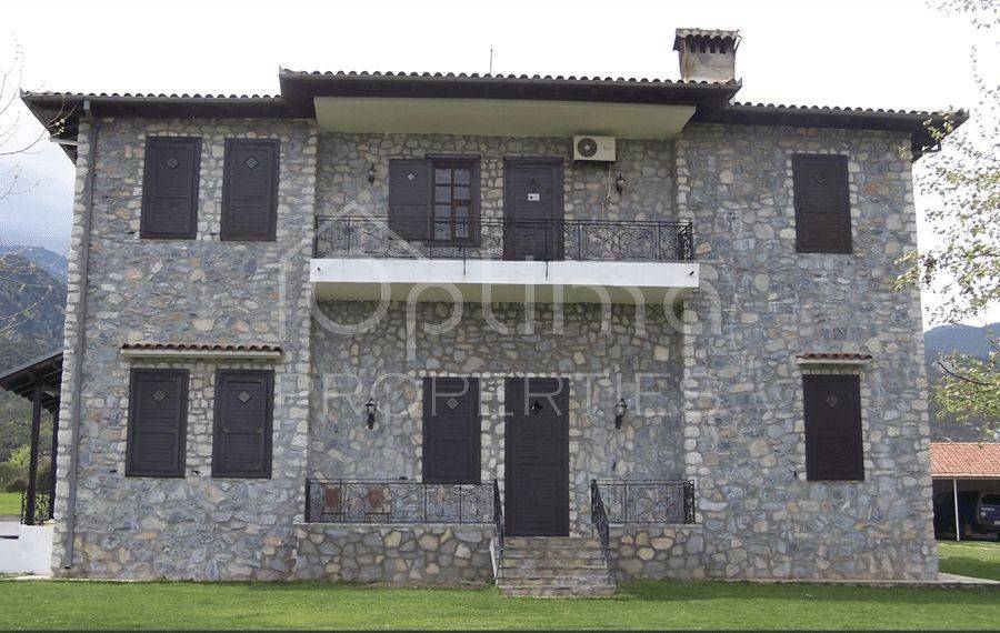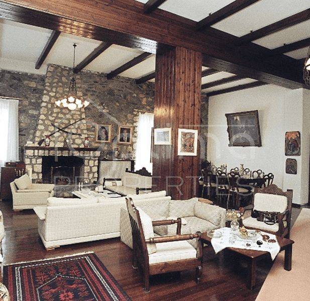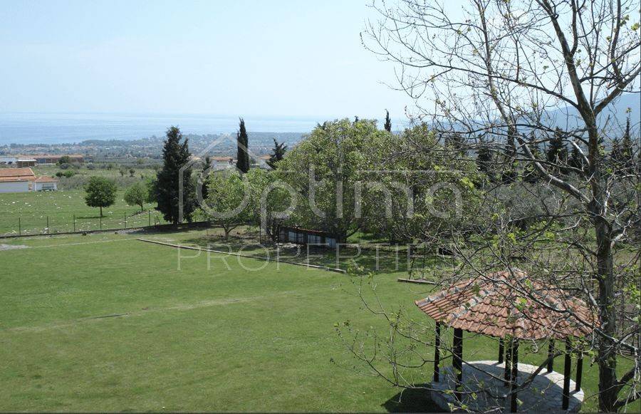 Anatolikos Olympos, Leptokarya - Detached House 447sqm plot 22500sqm, fully furnished, bedrooms 6, master bedrooms 6, levels 3, basement (149sqm) - ground floor (149sqm) - 1st (149sqm), excellent condition, year built 1987, energy class E, 2 living rooms, kitchen, 6 bathrooms, heating type: autonomous (oil), air condition, parking covered,3+, quiet, dual aspect apartment, luminous, sea view, frontage, storage space 15sqm, fireplace, balconies, garden, wooden frames, double glazed windows, door screen, wood floors, separate kitchen, without common charges, alarm, surveillance cameras, luxurious, internal staircase, barbeque, laundry room, cellar, pets allowed, residential zone, eastern orientation, access from asphalt, price is negotiable, investment property, close to sea (up to 5000m).