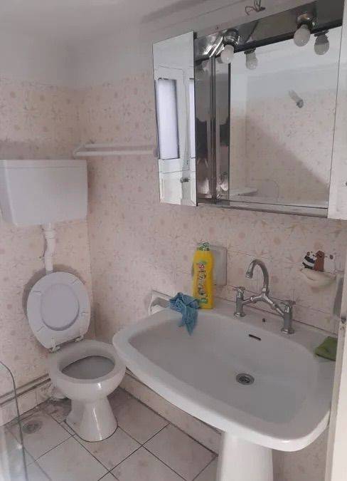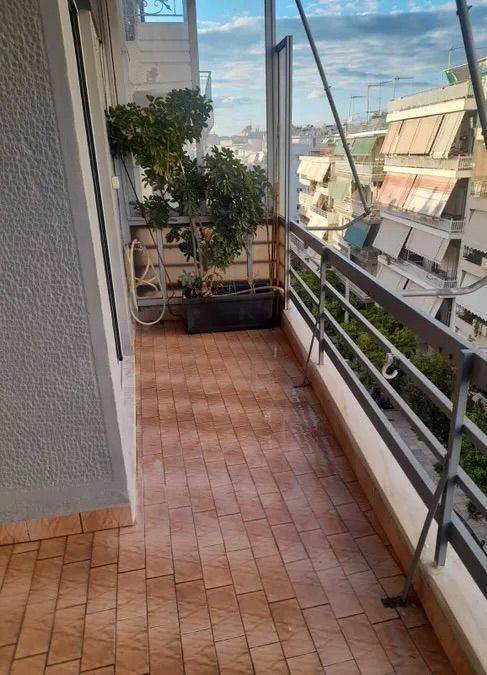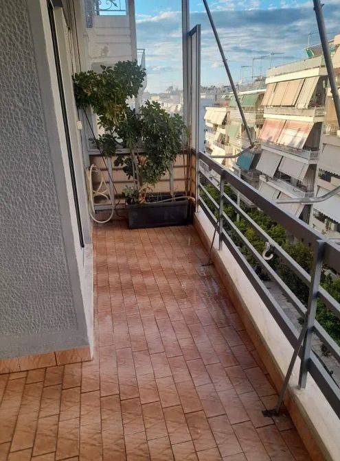 Διαμέρισμα 78 τ.μ., 4ος όροφος, Νέα Σμύρνη (κέντρο), 2 υπνοδωμάτια, 1 μπάνιο, σαλόνι, κουζίνα. Ανακαινισμένο μπάνιο, νέα ενεργειακά κουφώματα. Πολύ κοντά σε πλατεία, αγορά και τραμ. Διαθέτει ασανσέρ, ηλιακό, πόρτα ασφαλείας, βεράντα με θέα. Χωρίς θέρμανση.