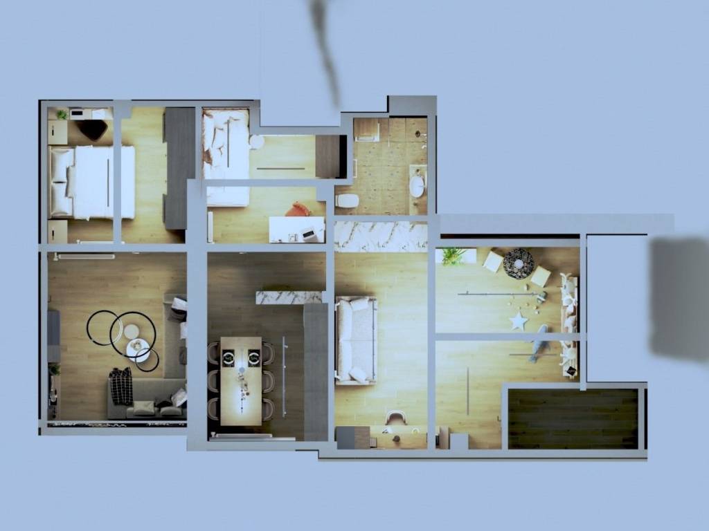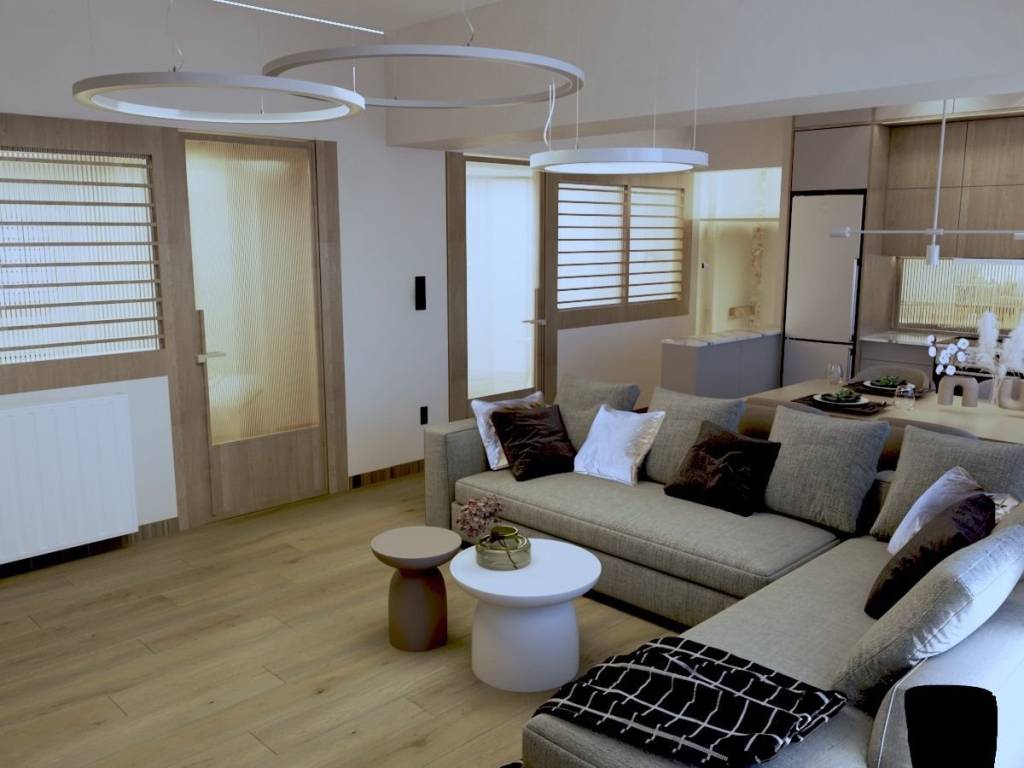 Ground-floor apartment of 113 sq.m. for sale in an excellent location in Neapoli, in the Strempenioti area—one of the quietest and most desirable neighborhoods. The property is currently undergoing a full, carefully executed renovation, carried out over time with strong emphasis on functionality and energy efficiency. It features 2 comfortable bedrooms, 2 living rooms, and 2 bathrooms, offering flexibility in layout and ideal conditions for modern living. Property features include: • Autonomous heating with natural gas • Thermal and sound insulation • PVC window frames (Kommerling) with energy-efficient glazing • Reinforced security entrance door • Video door entry system • Shared secure entrance for only 3 apartments Pricing: • €120,000 including kitchen furniture and sanitary ware (excluding electrical appliances and furniture) • €130,000 fully furnished and equipped with electrical appliances An excellent choice for both owner-occupation and investment, located in a highly sought-after area with easy access to shops, public transport, and essential amenities. Note: The images are photorealistic renderings, based on the final appearance of the property upon completion of the renovation.