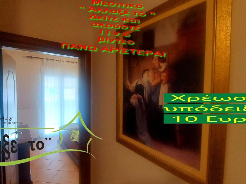 Check the video : https://youtu.be/Aui8QpOY74M The Presentation - suggestion of the property costs 10 €.(Including Taxes) law Ν.2859/2000 » Ar 9. If you liked the photos and the description, do not forget to watch and listen to the video! Watch and listen to the video as many times as you like here: https://youtu.be/Aui8QpOY74M or right and bottom to the end of the page. So you know from the beginning if it's worth to seeing it.. It's like you are within the home. SERVICES PROVIDED: The Presentation - suggestion of the property costs 10 €.(Including Taxes) Upon completion of the transaction, the above amount is deducted from the Brokerage Fee. The property is indicated by the demonstration of the police ID. The Presentation of the property at our office is free of charge. The Real Estate Change Office was created by Rania Pappa and Vassilis Kontelis, because when they were looking for a home, they were badly affected by ... realtors. Brokering fees is not the only thing that we care about. We love this job very much and we identify with you as if we were looking for a home for us ... Like Like on our Facebook page and see all opportunities here: https: //www.facebook.com/allaxeto.gr ΥοuTube : https://www.youtube.com/user/MsPaco75 Real Estate Office "Change it" Mobile phone for appointment: Vasilis 00306932425542 {cosmote,viper,what's app} Contact Person: Mr. Vasilis Kontelis Tel.: 00302310387655 Address: Riga Ferraiou 175 Sykies P.C. 56626 Thessaloniki Email: b-kontel@otenet.gr www.allaxe-to.gr