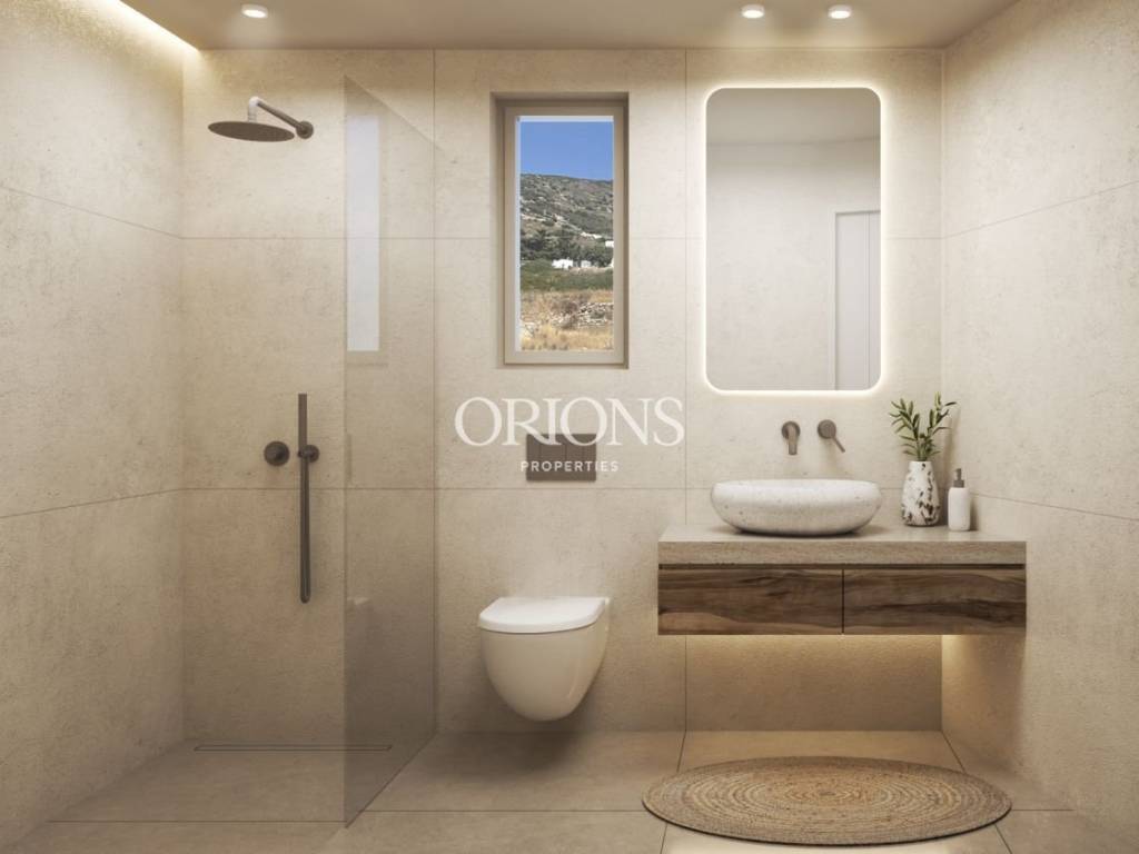 Part of a boutique complex of four residences, this newly built maisonette offers 106 sq.m. of interior space across two levels, with a thoughtful blend of modern architectural lines and Cycladic character. The house includes two bedrooms, a living room, a kitchen, and two bathrooms, with a layout designed for easy summer living and relaxed year round use.