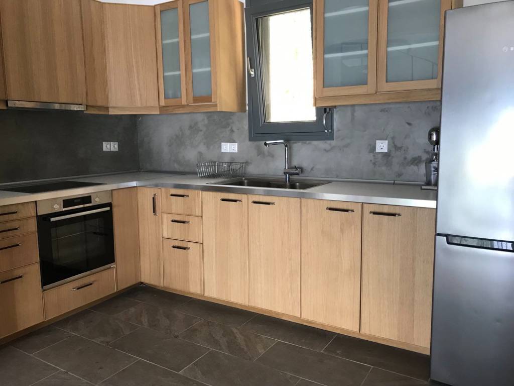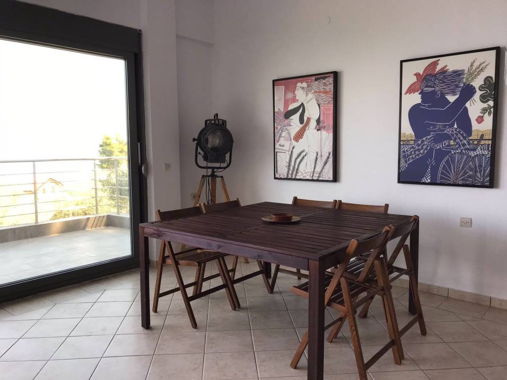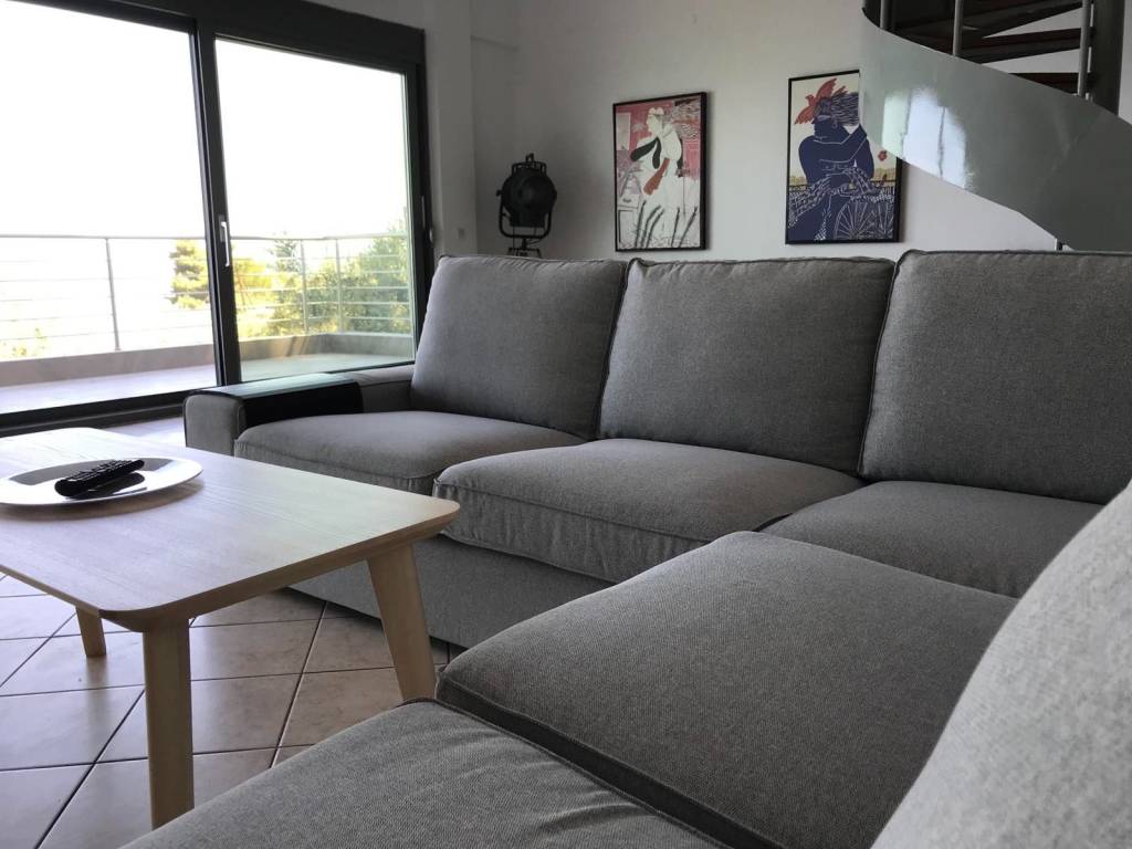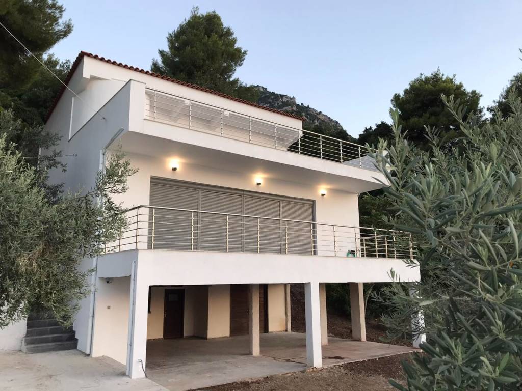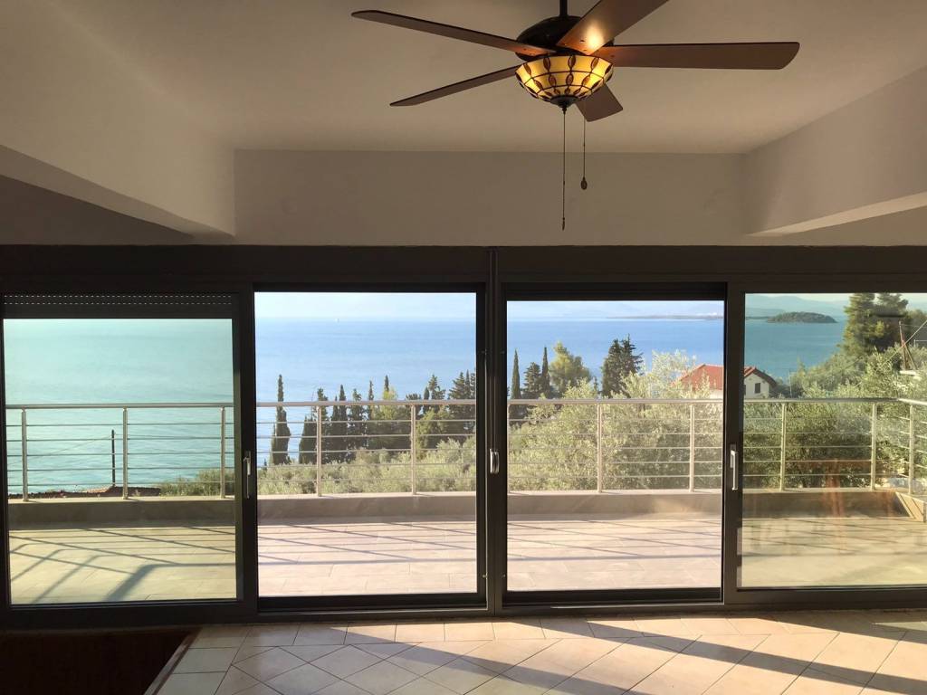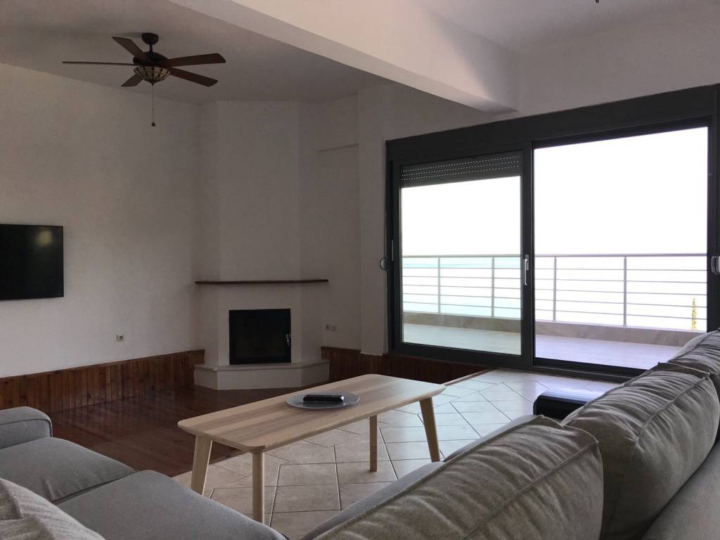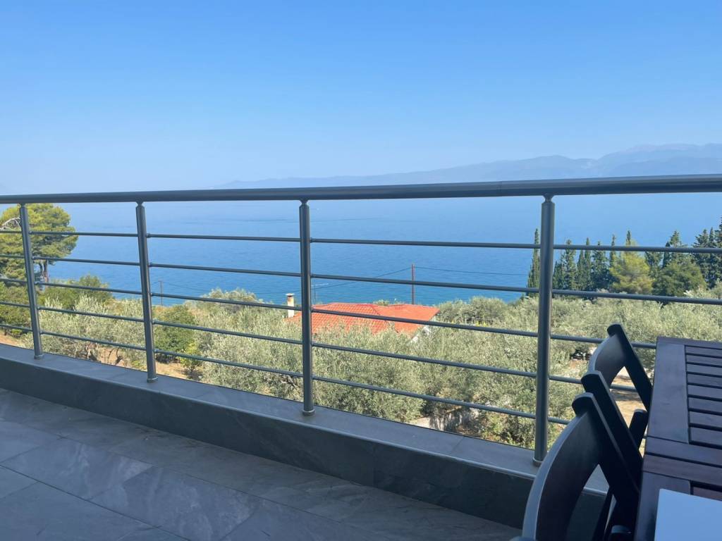 Furnished detached house in Asproneri, Fthiotida with a patio and endless views of the Euboean Gulf. It has been recently renovated with high quality materials (semi-solid oak kitchen, Grohe built-in bathroom faucets, new plumbing and electrical installations, Calpak solar water heater, air-conditioning in all areas for cooling and heating, new Exalco frames, security door, security bars on all windows). The plot of the property is 2,000 sq m, and is sloping. The property has parking for 5 cars, at the level of the house. It also has external garden lighting. It consists of 3 spacious rooms (1 room on the 1st floor and 2 rooms on the 2nd floor). On the 1st floor is the kitchen with a large living room and the 7-meter heavy-duty glass - professional series of Exalco, which offers an unobstructed view of the sea even through the position of the 2 sofas in the living room. The beach of Asproneri is 3 minutes walk distance, while Kamena Vourla is 3 kilometers away. There is a possibility of building a swimming pool in front of the pier. The pier can be exploited in many ways. Currently the property is rented with a long-term lease and its demonstration is done after consultation and serious interest. A truly unique property.