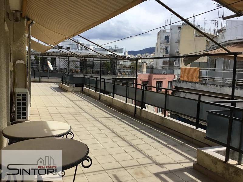 ΝΕΑΠΟΛΗ ΕΞΑΡΧΕΙΩΝ, ηλιόλουστη ρετιρέ μεζονέτα 111 τ.μ, 4ου - 5ου ορόφου, γωνιακό, προσόψεως με μεγάλη γωνιακή βεράντα. Ο 4ος όροφος αποτελείται από ενιαίο χώρο υποδοχής, ανεξάρτητη κουζίνα, 1 υπνοδωμάτιο, μπάνιο και ο 5ος από 1 υπνοδωμάτιο, μπάνιο. Διαθέτει πόρτα ασφαλείας, κουφώματα αλουμινίου, διπλά τζάμια, αποθήκη, ηλιακό θερμοσίφωνα, κλιματισμό. Πλησίον Πεδίον Άρεως.