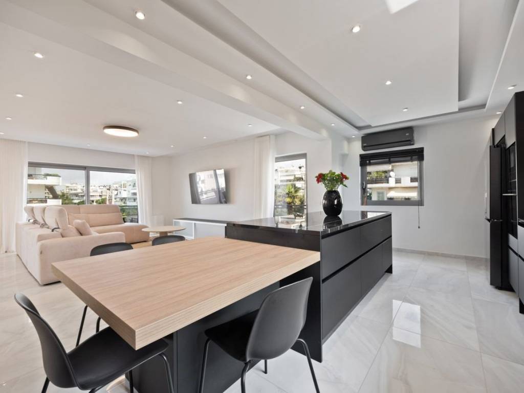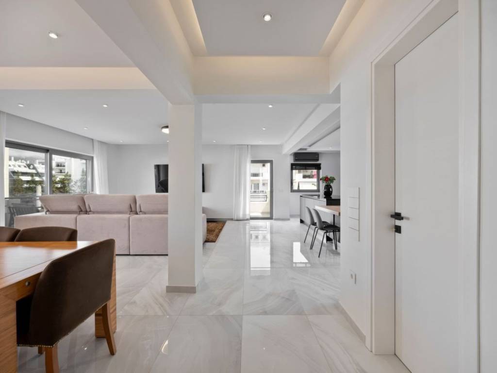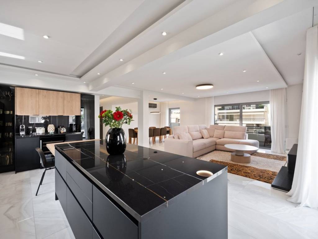 In prestigious Glifada, this top-condition 180 sq. m. apartment offers 3 ensuite bedrooms, plus a guest bathroom, and a majestic kitchen that blends with the living room, all fully furnished Originally built in 1980 and exquisitely modernized in 2026, it blends timeless stature with contemporary refinement. State of the art appliances and furnishings. Everything can be controlled by a phone app, a true smart home. A sense of calm luxury defines the interiors, where light and space flow effortlessly across elegant parquet and marble floors. Thoughtful planning creates a residence that feels both grand and intimate, ideal for elevated everyday living and sophisticated entertaining. Premium built-in cupboards, a sleek kitchen, and a discreet guest toilet add effortless comfort, while a lift ensures seamless access. A northwest-facing balcony frames sea breezes, complemented by a heat pump system and enhanced peace of mind with an alarm system and high-security door. This is Glifada living at its finest: a fully refreshed, ocean-facing home designed for those who value privacy, polish, and enduring quality. Set in the coveted Glyfada Riviera, this address is ideal for discerning buyers seeking a refined coastal lifestyle with effortless access to Athens—perfect for executives, international families, and yachting enthusiasts who value privacy, prestige, and year-round sea air. Everyday convenience is close at hand: Glyfada’s boutiques, cafés, and gourmet dining are about 10 minutes by car, while central Athens is roughly 30–40 minutes by car, depending on traffic. Athens International Airport is approximately 30–45 minutes by car, making weekend escapes and global travel remarkably smooth. Leisure is quintessentially Athenian-Riviera: enjoy beach clubs and shoreline promenades within about 10–15 minutes by car, and reach Glyfada Golf Club in around 10 minutes. Marinas, sailing, and waterfront fitness options elevate daily life. A rare blend of cosmopolitan energy and seaside serenity defines the setting—an address that offers both Riviera glamour and swift connectivity, creating an exceptional base for an uncompromising lifestyle.