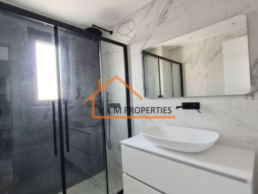 Nea Smyrni – Center, prime location near the main square. Newly built 94 sq.m. apartment on the 5th floor, with 3 bedrooms, a bathroom, and a WC. Includes an underground parking space and storage room. Underfloor natural gas heating, air conditioning, built-in appliances, and an energy-efficient fireplace.